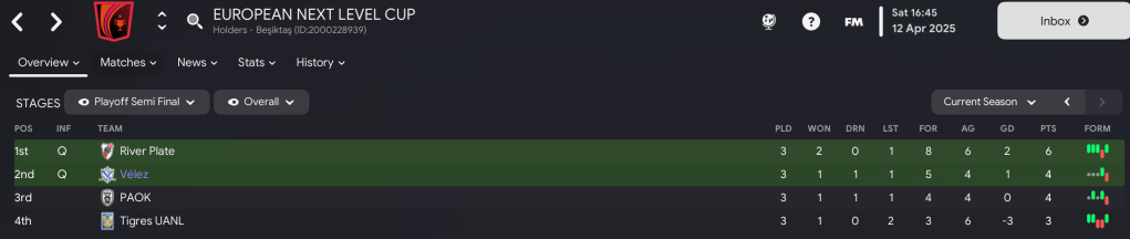 Bizarrely, that sent us into a semi-final group of four teams with the top two progressing to the Final. We started with a 1-1 at PAOK then an early Tel goal and an Endrick double led a 3-0 win at home to Tigres. That teed up another big clash with River Plate, but even a 3-1 defeat was enough to progress.