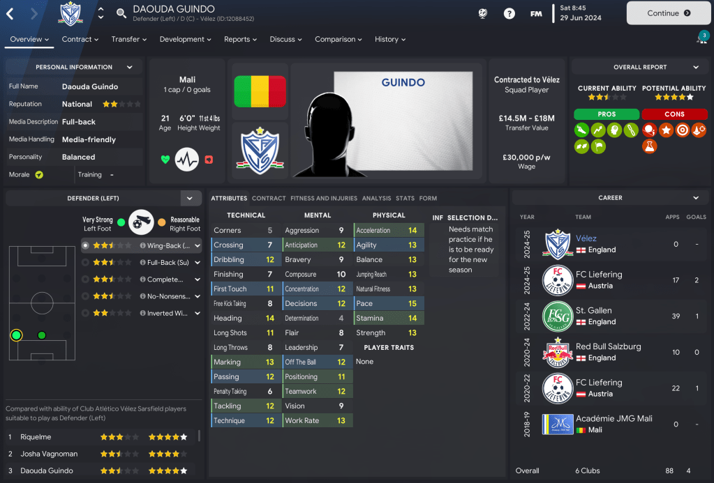 The vast sums of money available in the various leagues and competitions saw us finish the previous season with £100m available to spend. That was boosted by several sales, including older players like Lucas Janson and Walter Bou, and we wasted no time spending it to begin strengthening for the new season, which saw another £51m still available as the new season ticked over with £178m in the bank. But even more money came in as Datro Fofana moved to Krasnodar for a massive record sale of £88m before losing centre-back Dejan Kovacevic to his £16.5m minimum fee clause to Lyon on deadline day.