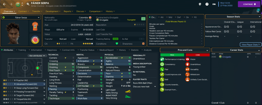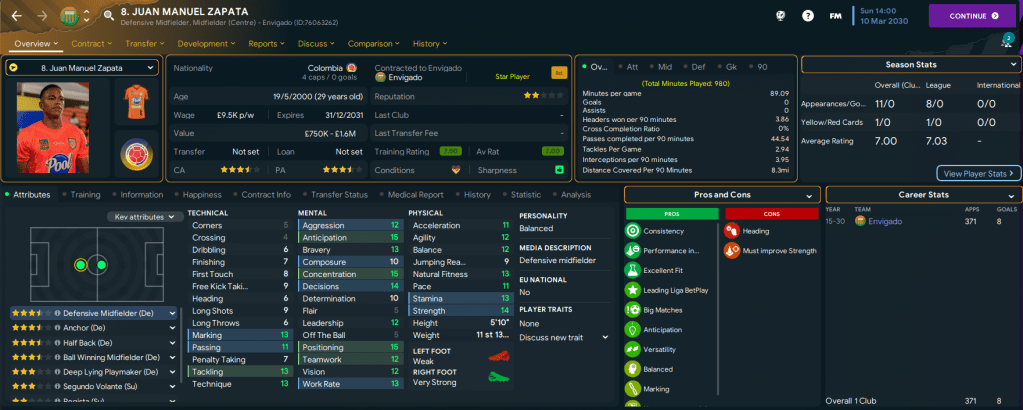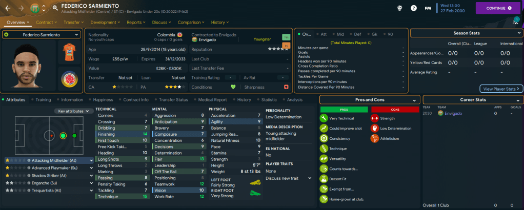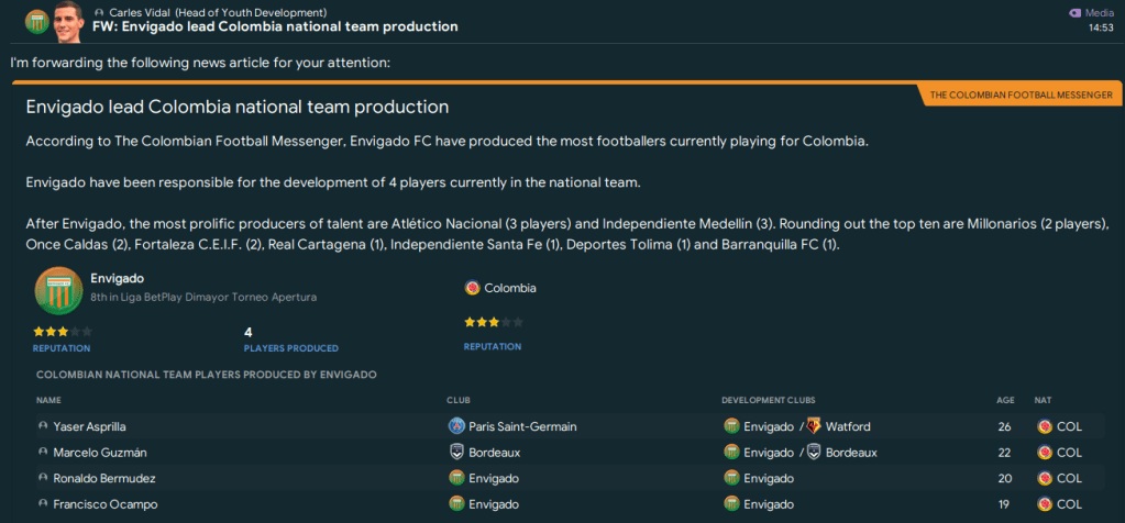 The tactic remains the same with Rodolfo Vega, who wasn’t even considered a top prospect in his youth intake in 2027, suddenly emerging as the second-best centre-back at the club. While winger Jaiber Prince is now considered the best player at the club, closely followed by star striker Francisco Ocampo.