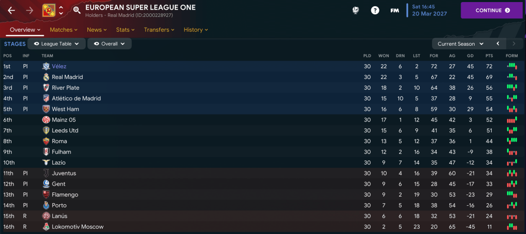 However, I think 5 seasons at Vélez is enough of an experiment, so we’ll leave it there for now. Hopefully you’ve enjoyed this different experiment and if you want to test it out for yourself then you can download the European Super League database.