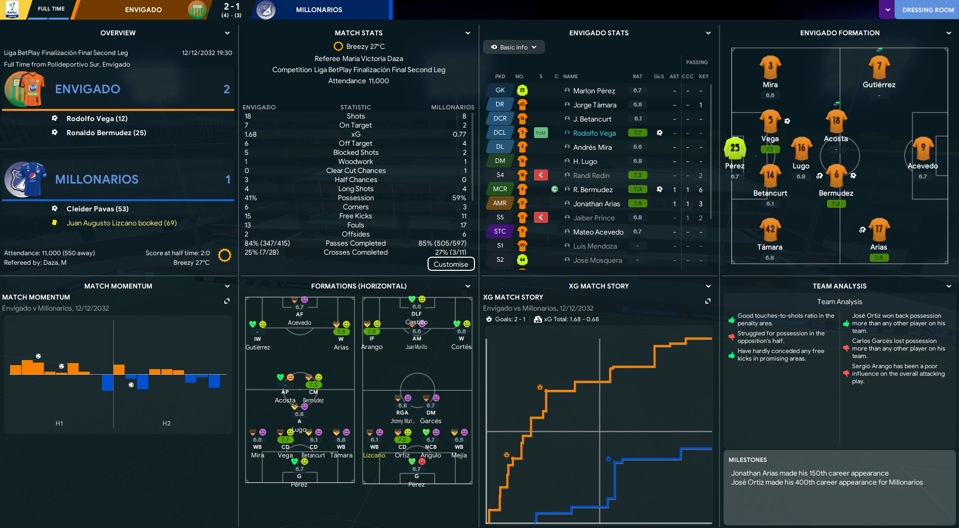 A tasty Finalización Final saw league favourites Millonarios, who were in their first league final for four years, face Envigado chasing a fourth successive Finalización title. First up was a trip to Bogotá, where the hosts led early. Goals by Bermudez and Prince had Envigado ahead at the break but Millonarios got a deserved equaliser 20 minutes from time.