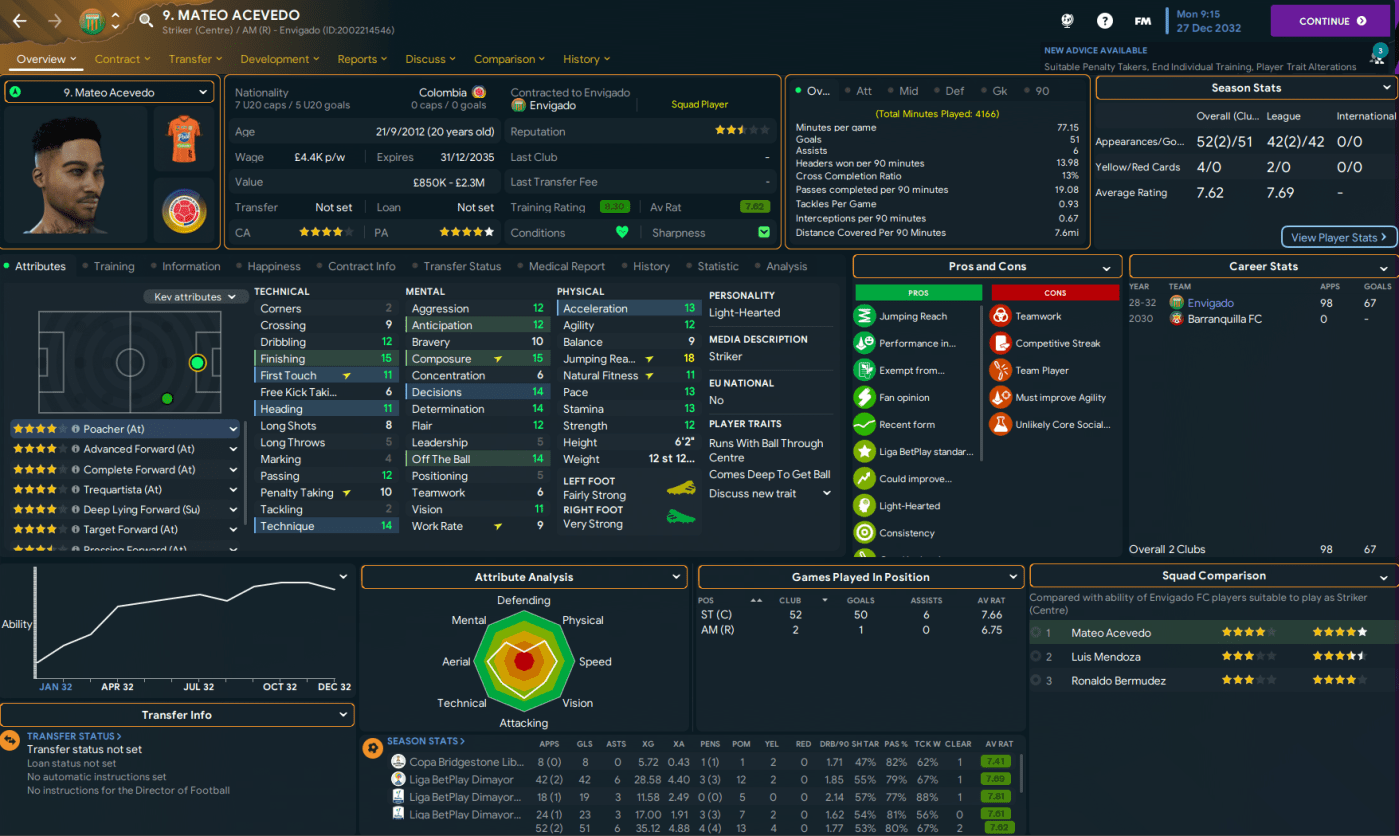There’s no question who Envigado’s star man was this season as Acevedo obliterated the club’s goalscoring records with 51 goals in 54 games. He also set a new league average rating record of 7.69 and a new club record of 7.62. As a result, he unsurprisingly won Liga BetPlay Player and Young Player of the Year.