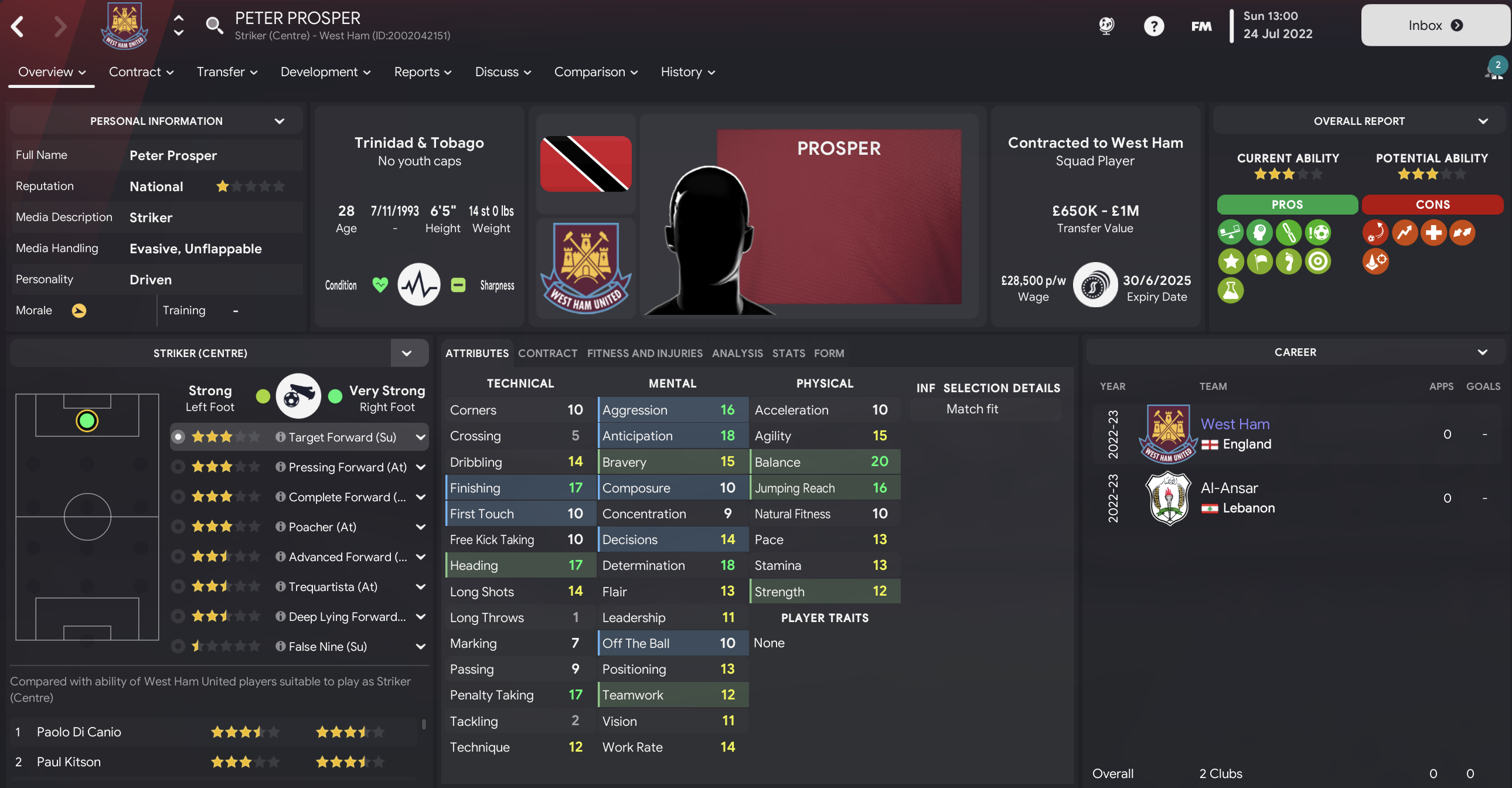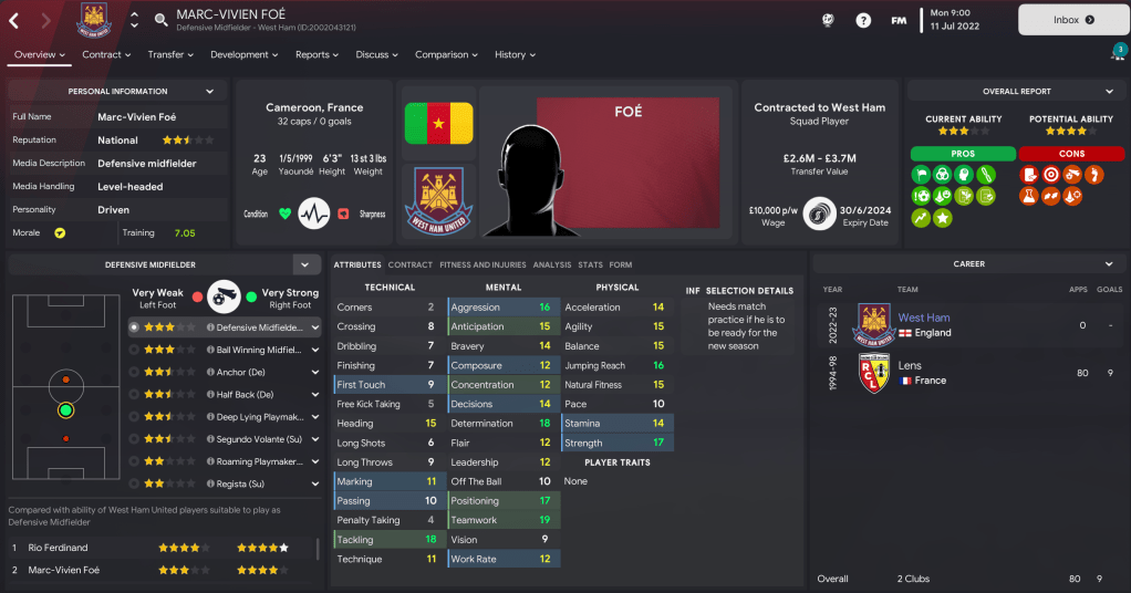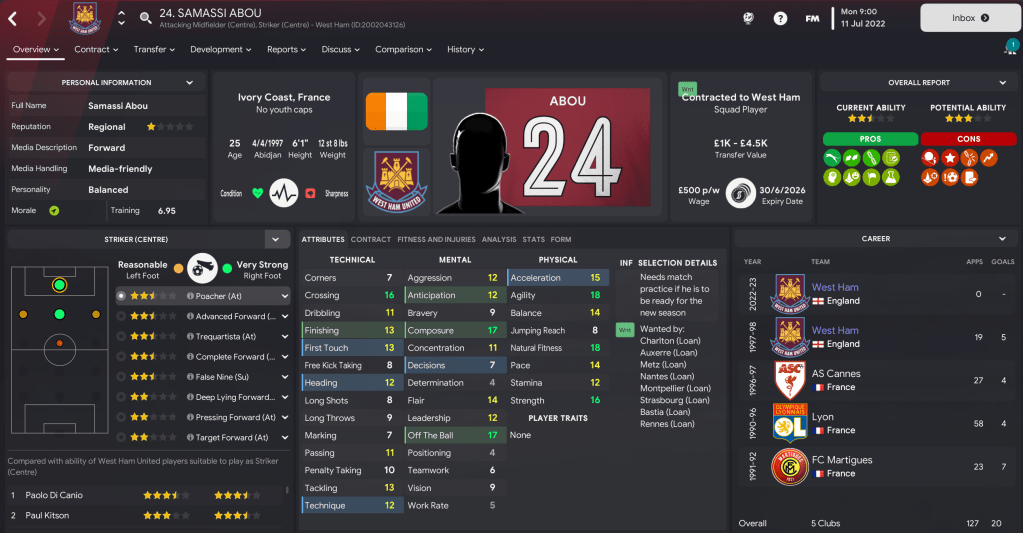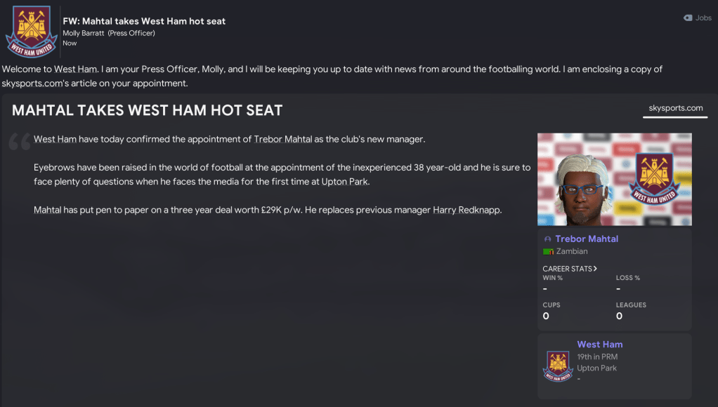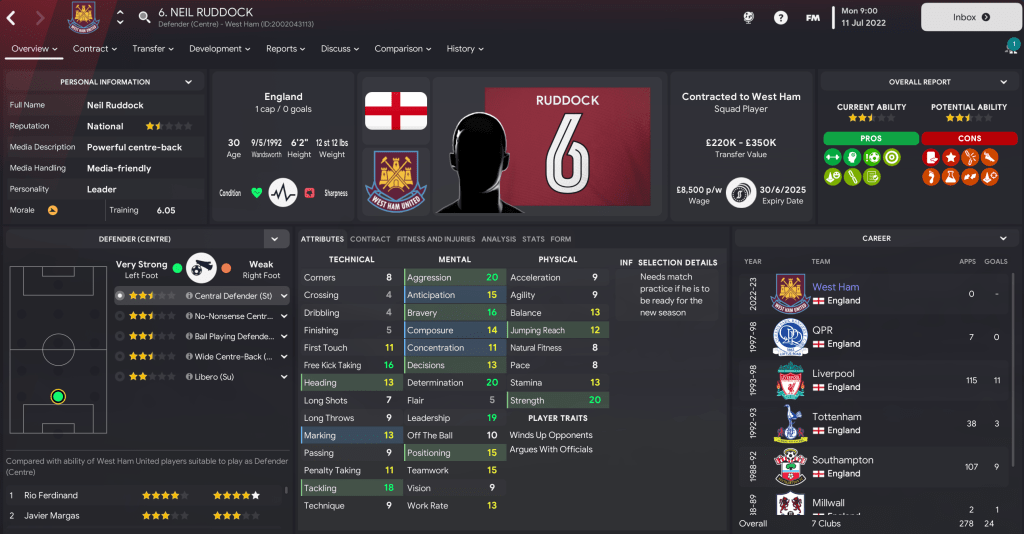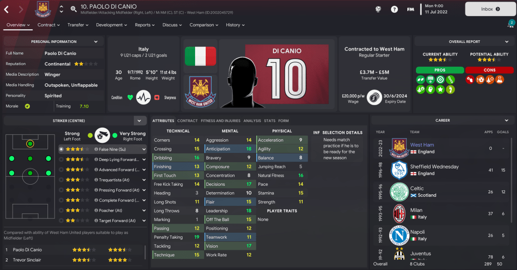 Transfer values are much lower than those you’d be accustomed to in regular FM saves and spending in this database is significantly lower as a result. And seemingly, Man UFC are the only club with any money to start the game.