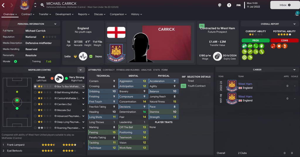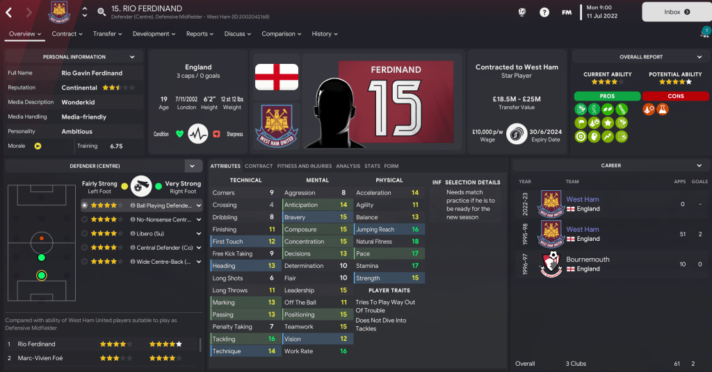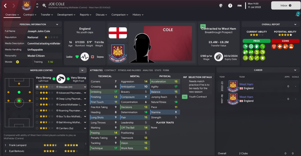 Choosing a team in this database was hard work, so it’s likely we may run a few experiments with different teams over the next few months. I was really tempted by the likes of Leeds United, Fiorentina, Lazio, Parma, Real Betis, Wimbledon FC and more. But one of the teams that stood out as an exciting project was the wonderkids of West Ham United.
