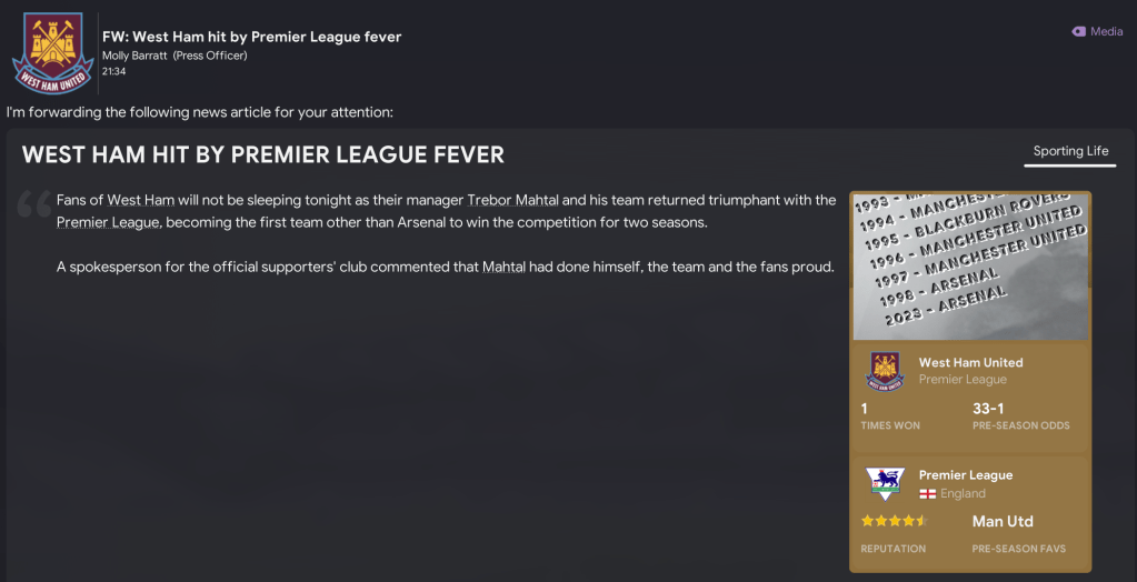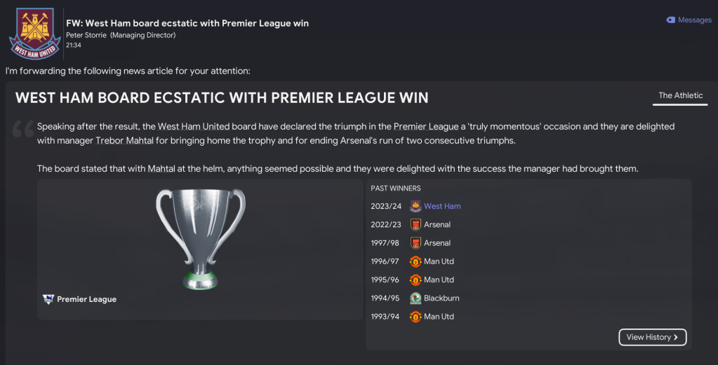 Welcome back to this FM Experiment taking us back to the 1998/99 season courtesy of The Mad Scientist’s retro database. In Part 1, we met the West Ham squad and their new 6ft 8in Zambian/Brazilian manager Trebor Mahtal and now, in Part 2, we’ll push ahead through the first 2 seasons. And I have to say, this database really is a delight!