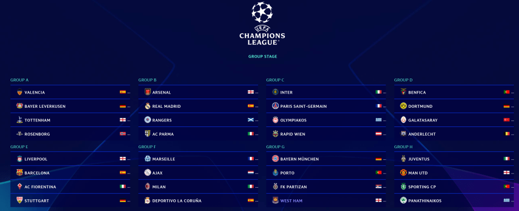And it looked more than OK as Jaunildo scored the only goal in their opener at home to Bayern. They won easily in Partizan then lost 1-0 at Porto and drew with them 1-1 at home. Michael Carrick scored his first senior goal in a 3-0 win at home to Partizan that booked their place in the knockouts. They took on Milan in the quarter-finals and won a wild home leg 5-4 but Oliver Bierhoff scored 4 in a 5-1 thumping at San Siro.