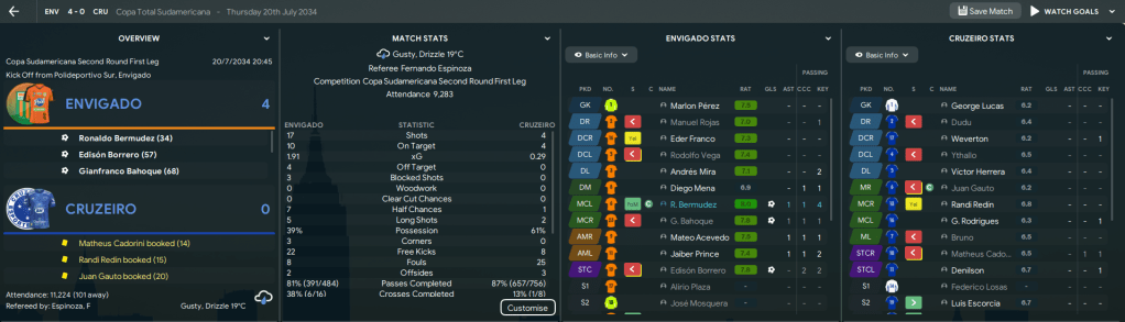 Days after selling Redín to Cruzeiro, Envigado were reunited with him as they took on the Brazilian side in the second round of Copa Sudamericana. And it was his replacement who offered a timely reminder of why Redín had been sold. 17-year-old Gianfranco Bahoque scored and got an assist, as did his midfield partner Ronaldo Bermudez, as Envigado strolled to a 4-0 victory. That gave Lazaró freedom to rotate a little for the away leg and a 2-0 defeat sent them through.