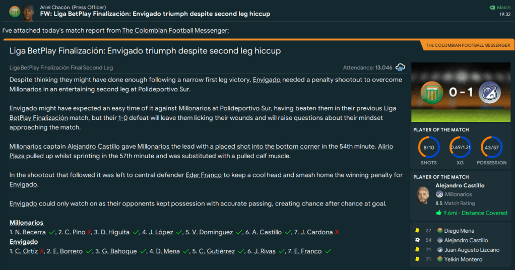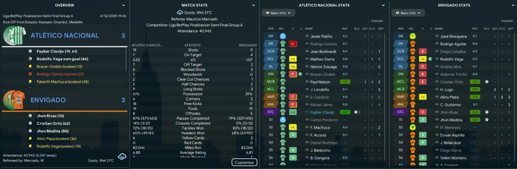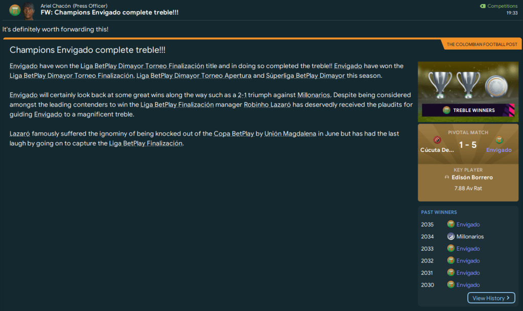 The summer of 2035 could be interesting as some of South America’s biggest clubs were sniffing around Envigado’s players. Could Lazaró keep his team together? Join us on Friday to find out!