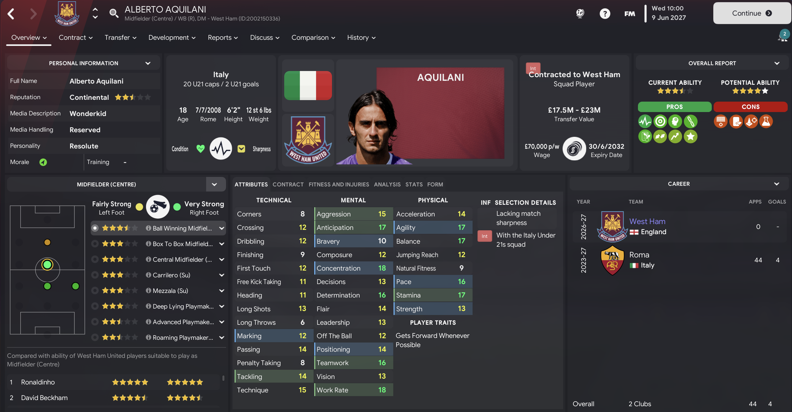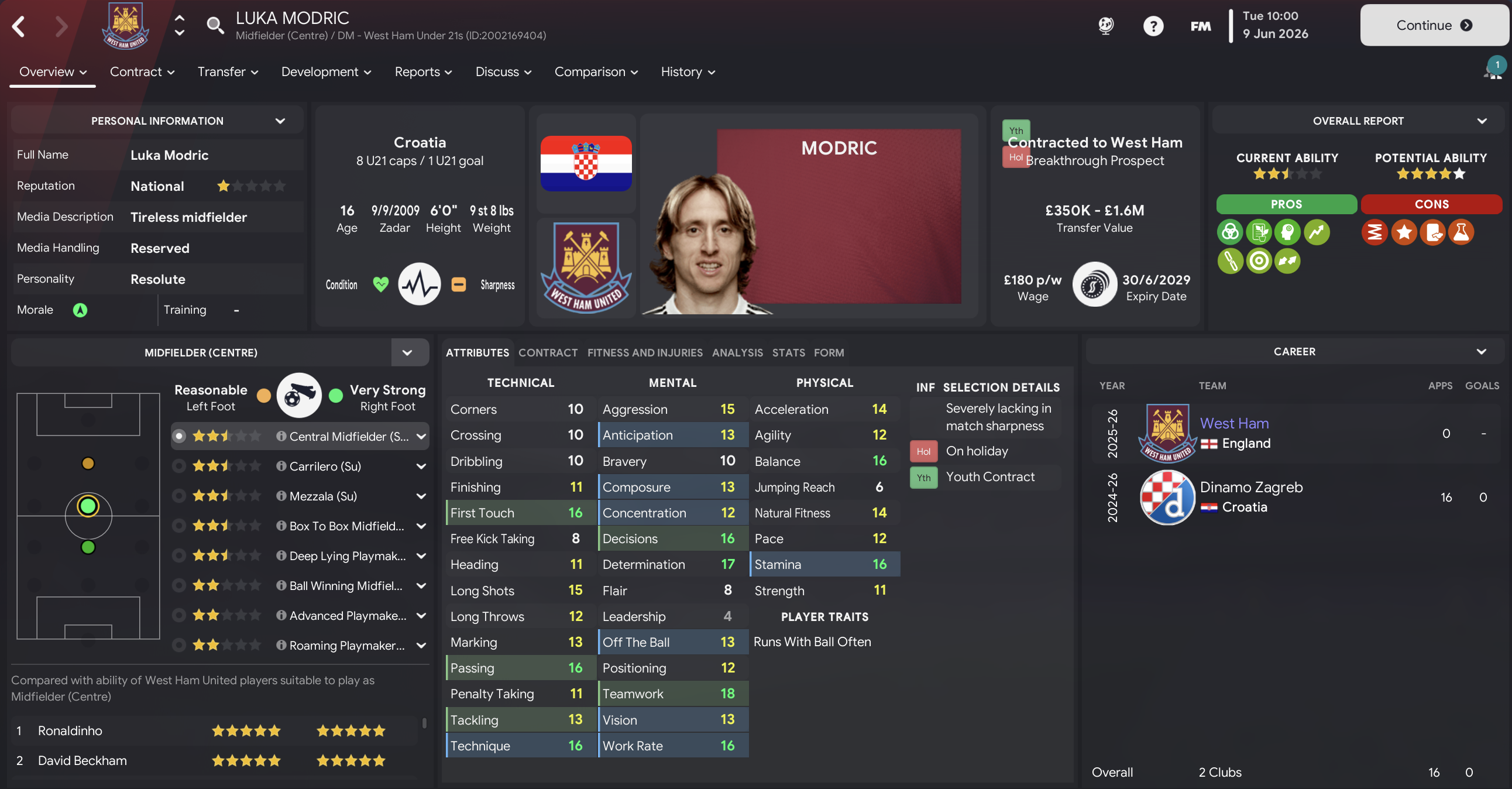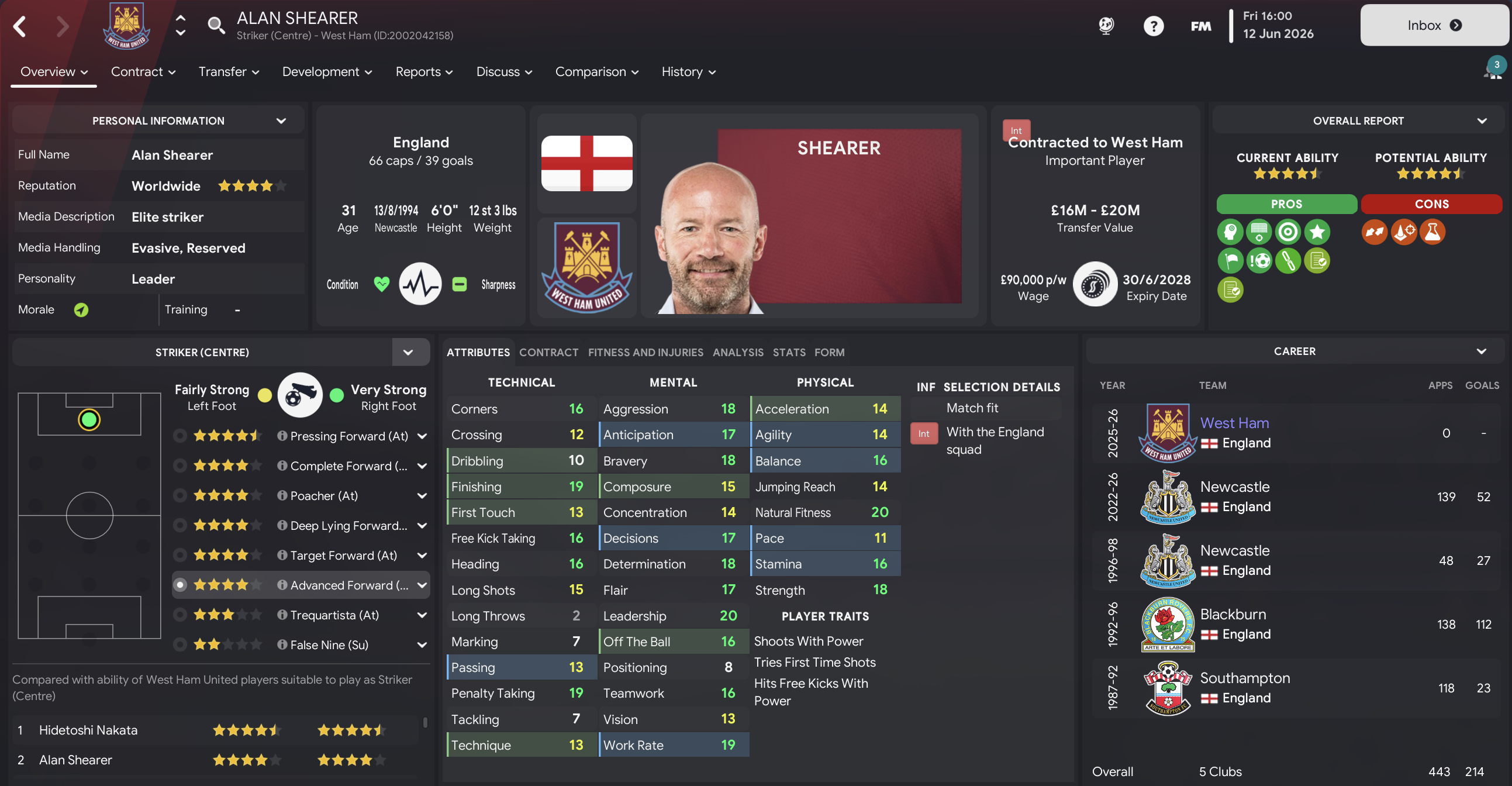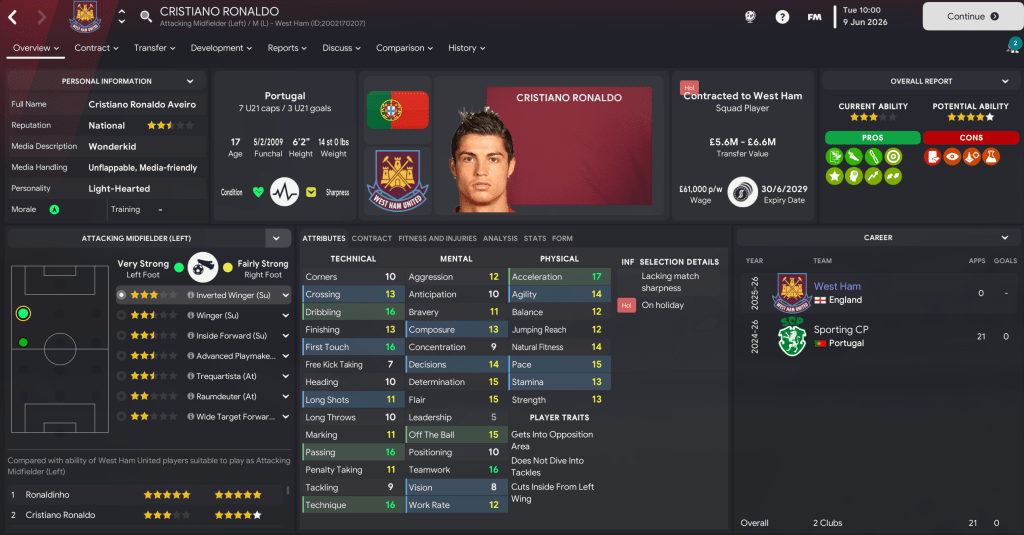 Mahtal added to his exciting real-life newgens in the summer of 2026, with the headline grabber being 17-year-old left-winger Cristiano Ronaldo for £5m from Sporting. He also snapped up 16-year-old Luka Modric for £1.1m from Dinamo Zagreb and two centre-backs in 17-year-old Giorgio Chiellini for £6.5m from Inter and 16-year-old Raúl Albiol for £1.3m from Valencia. He also decided to bring in an old head to support these exciting youngsters, signing requested Alan Shearer for £7.5m from Newcastle.