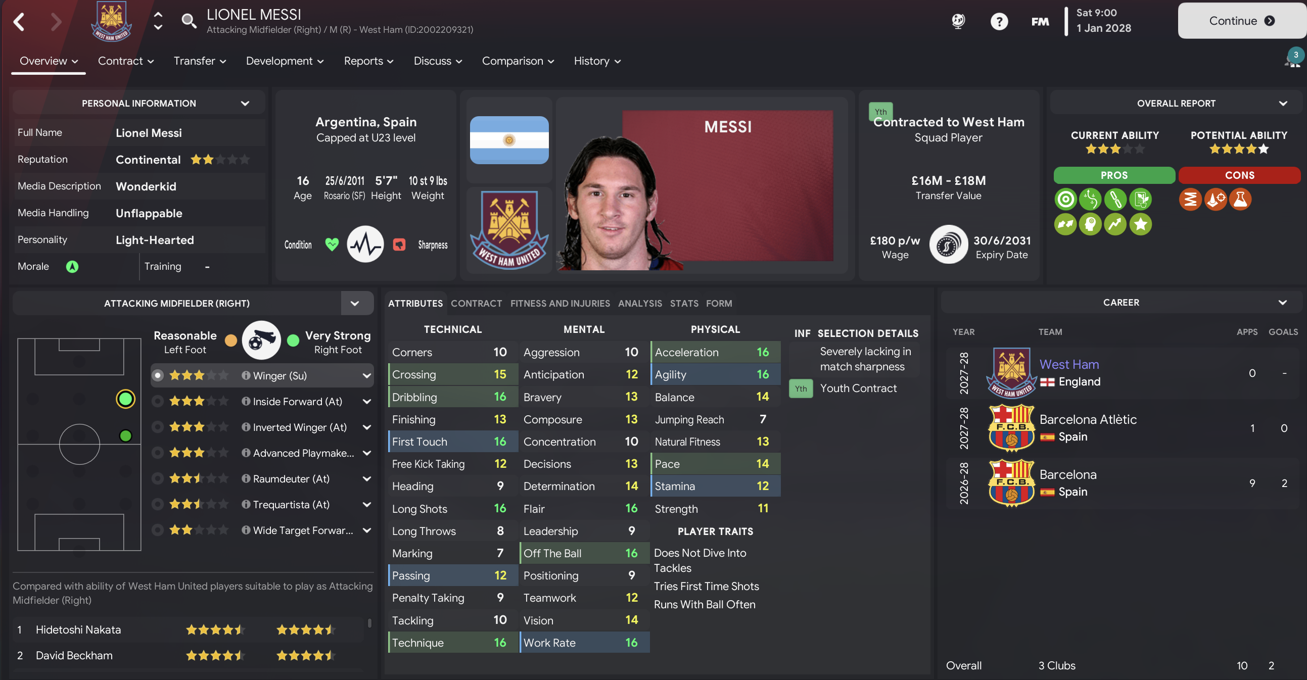 The summer of 2027 was a little quieter but two stars did arrive in Sergio Ramos for £5.25m and the impressive-looking Alberto Aquilani for £18m from Roma, taking the club to a total of 13 wonderkids. However, all signings so far could, potentially, be trumped by snapping up a 16-year-old Lionel Messi for £15.75m from Barcelona.