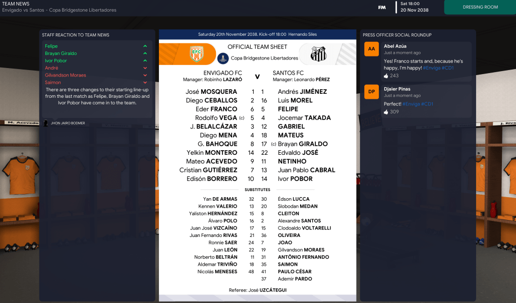 For the second time in 12 months, Envigado and Santos went head-to-head in the Copa Libertadores Final. This time 40,000 fans descended on Hernando Siles in La Paz, Bolivia. Lazaró had a clean bill of health so lined up: