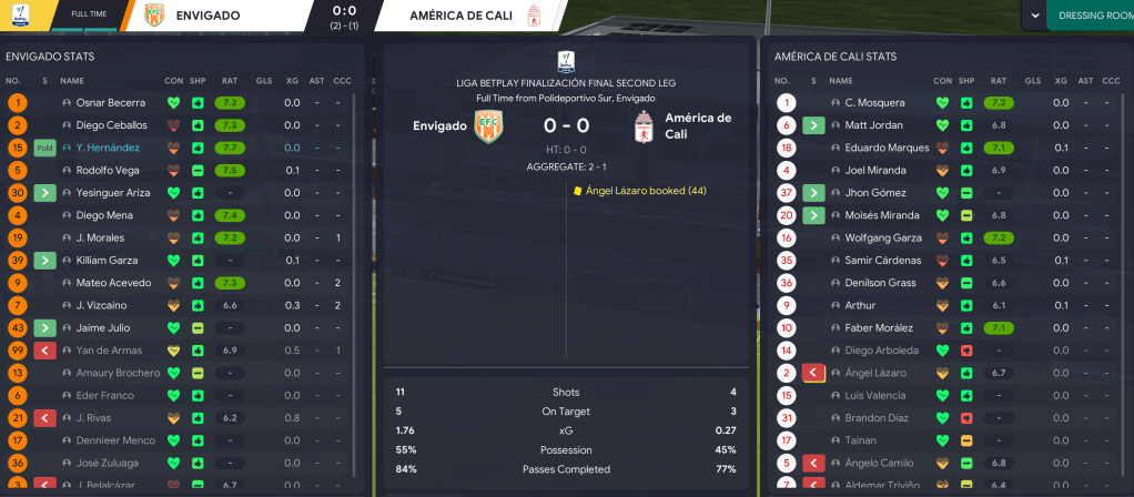 Reaching the Finalización post-season meant Envigado had a chance to win a 12th successive Liga BetPlay title and a sixth straight league title double. The post-season group paired them with Junior FC, Deportivo Cali and Millonarios, which began two days after the Libertadores Final and the six games took place over just 11 days! However, Lazaró had learned to rest players between every game to ensure they were at least fit for most.