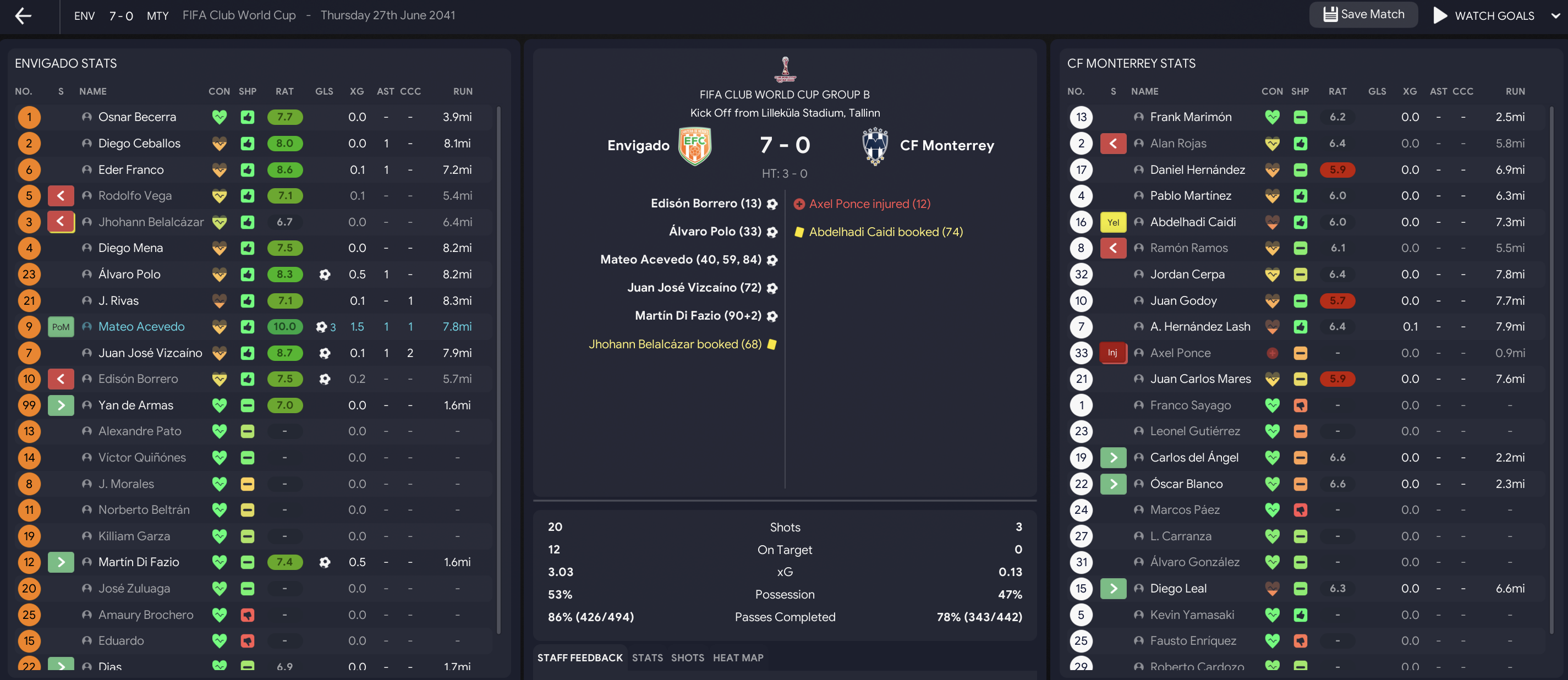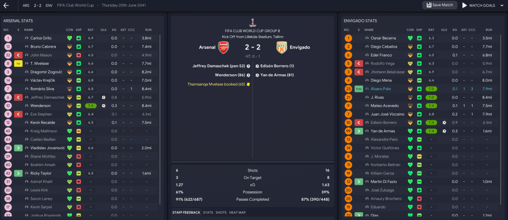 Despite winning Libertadores twice, Envigado had never been to the FIFA Club World Cup. But that changed in June 2041, slap bang in the middle of their Apertura Final against Nacional. The club played its first-ever matches outside of South America as they went to Estonia (random) for a group alongside Arsenal and Monterrey.