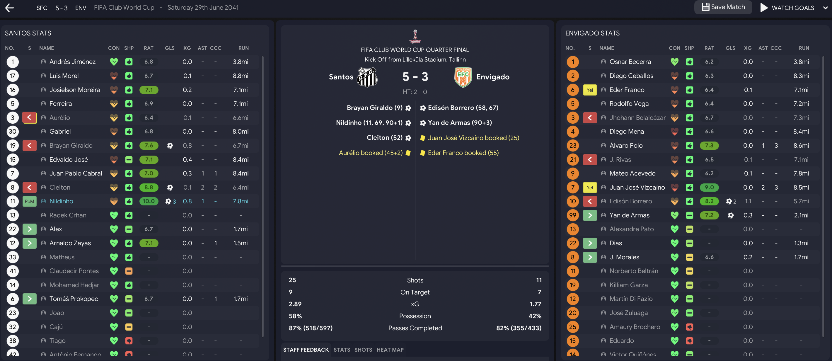They began against Champions League runners-up Arsenal and were exceptional as they dominated the game by 16 shots to six, led early on and were unlucky to draw 2-2. A week later, they took on CONCACAF champions Monterrey, who had three days fewer rest but beat Arsenal 3-1. And that showed as Envigado rose to the occasion with a club record 7-0 victory led by an Acevedo hat-trick! A familiar foe lay in wait as they took on Santos in the quarter-finals. Envigado had one day of rest but still put up a good fight only for their nemesis Nildinho to score another hat-trick as Santos won 5-3. Santos went on to win the Club World Cup, defeating PSG 2-1 in the Final!