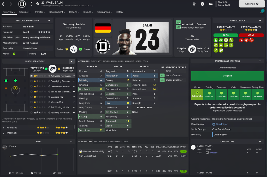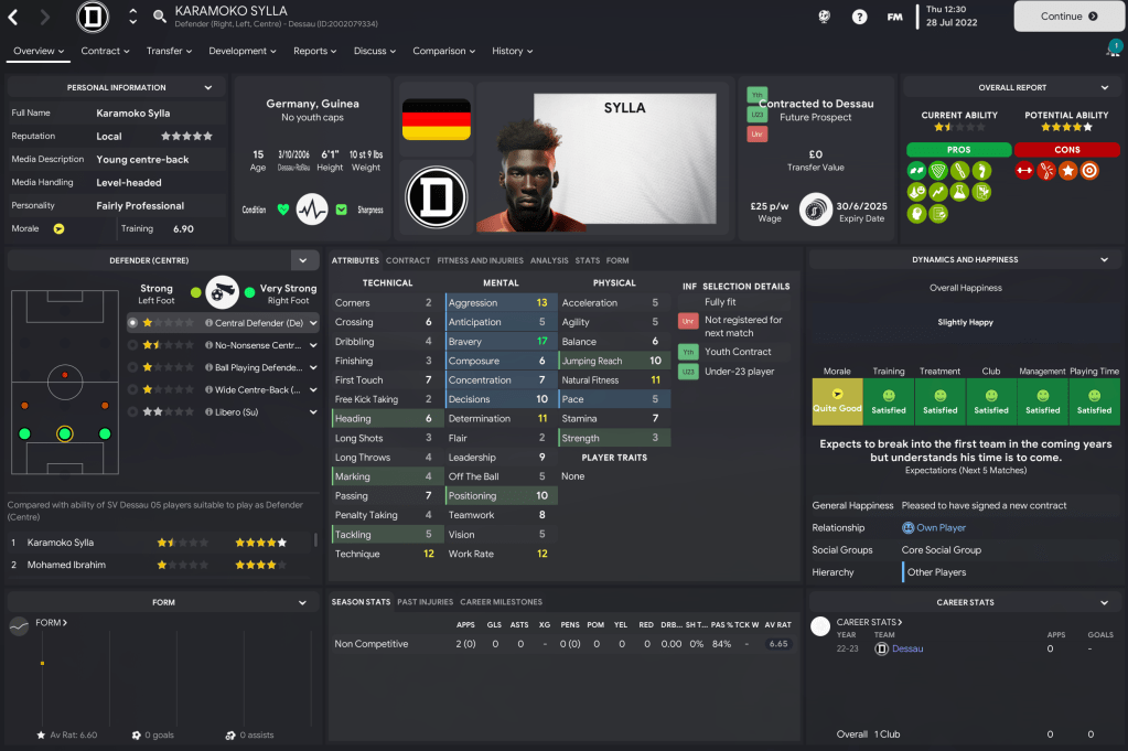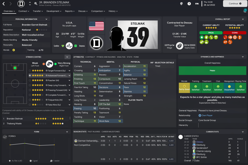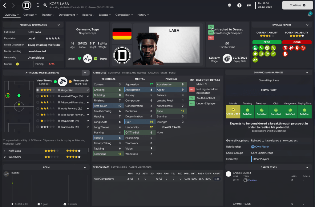 Upon loading up FM23, two playable East German clubs had job vacancies. So Prusseit dusted off his CV and submitted applications to fifth-tier side 1. FC Frankfurt and sixth-tier SV Dessau 05. To his delight, his mobile phone was quickly buzzing away as both sides were keen to come in to attend an interview. First up, on 10 July 2022, was Dessau, who seemed relatively pleased with his responses and shared vision for the club. Later that day, FC Frankfurt got in touch and seemed equally pleased with Prusseit’s interaction.
