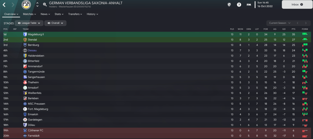 Dessau play in the German Verbandsliga Saxonia-Anhalt, which is one of the many divisions in the sixth and final playable tier of this German database. The top two teams get promoted into Oberliga and the bottom two… well, based on what happened in the previous OstDeutscher Sieg, it’s probably best not to think about that.