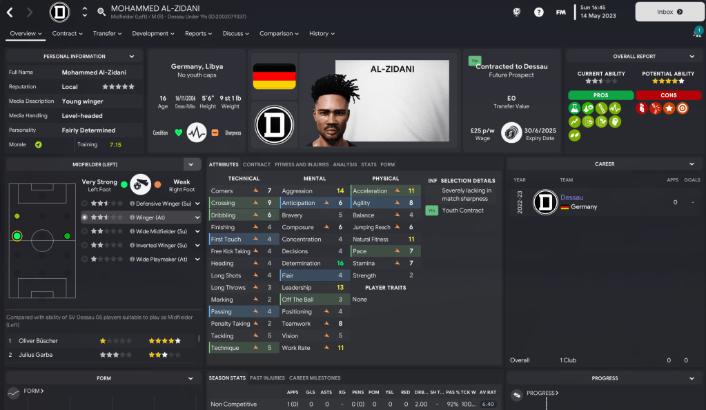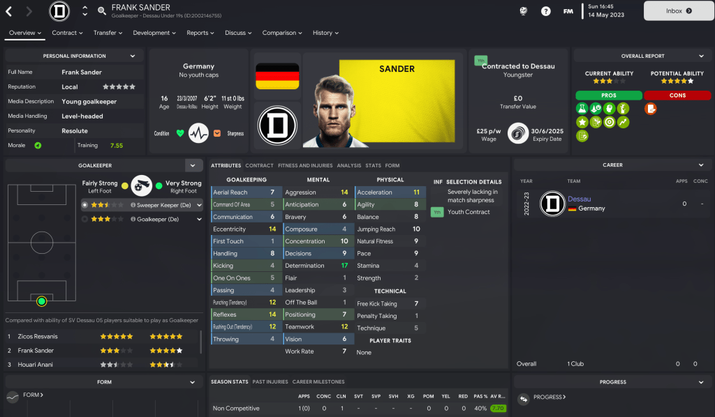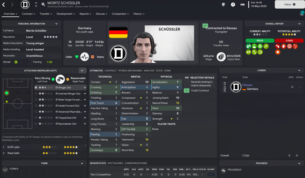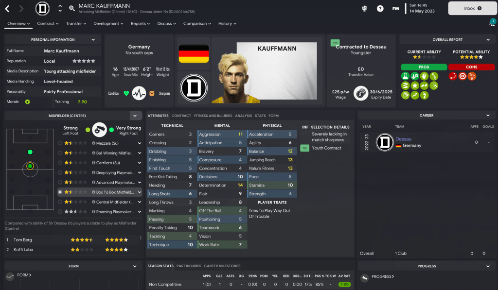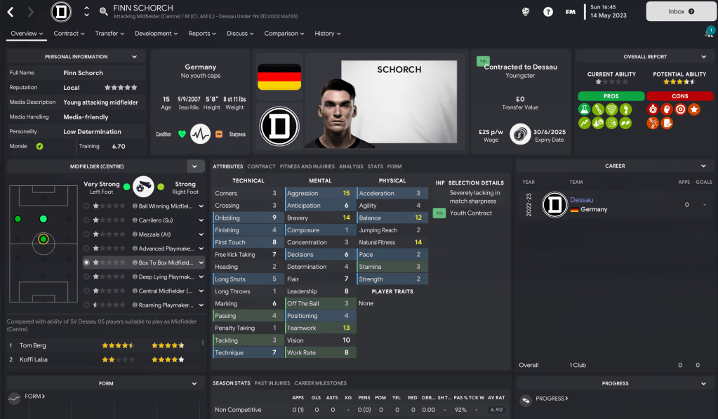 However, the loss of Stalmek was tempered by a youth intake that looked pretty impressive on paper. Prusseit’s first official youth intake delivered 14 players with at least 4.5-star potential and nine with 5-star potential. That was led by striker Tom Berg, who could be the ideal replacement.