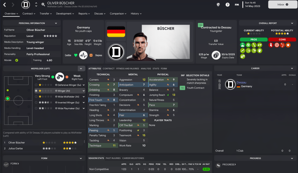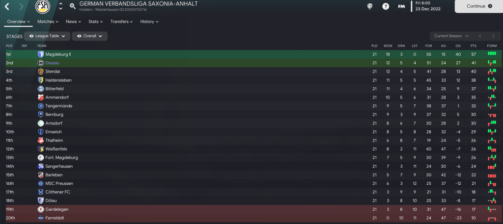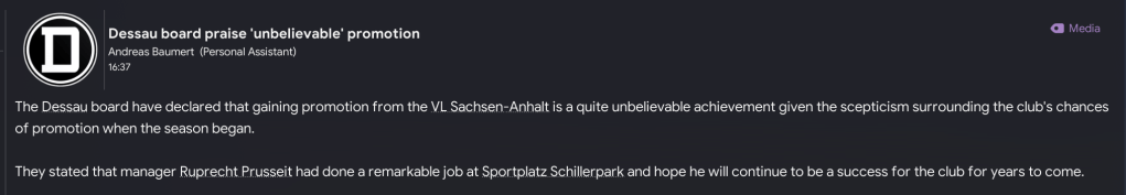 Ruprecht Prusseit enjoyed a strong start to his new career as a fledgling Football Manager, leading SV Dessau 05 to six wins in his first 10 games in charge. The challenge now was to maintain that form and push for promotion by finishing in the top two of Verbandsliga Saxonia-Anhalt.