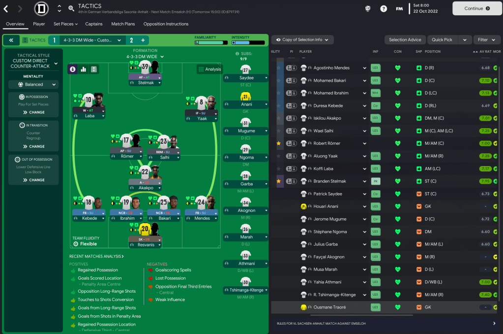 Having been thrown straight into the thick of league action, Prusseit eventually settled on a fairly standard 4-3-3 formation that gave star striker Branden Stelmak, who’s considered a leading player for the tier above, freedom to do his thing. And that had seen him plunder 23 goals in his last nine games.