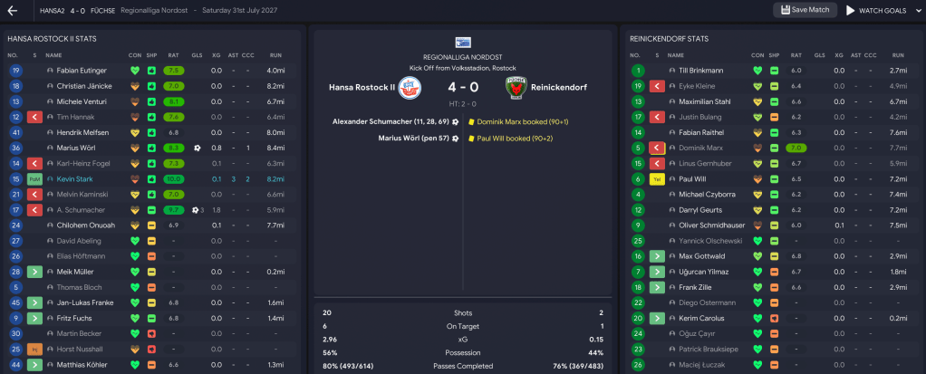 Rostock II maintained their stellar form as they went to Chemnitzer and late goals by midfielder Fritz Fuchs and Onuoah nicked a 2-0 win. Then a trip to Rot-Weiß Erfurt in their game in hand saw them ease to a 3-0 victory.