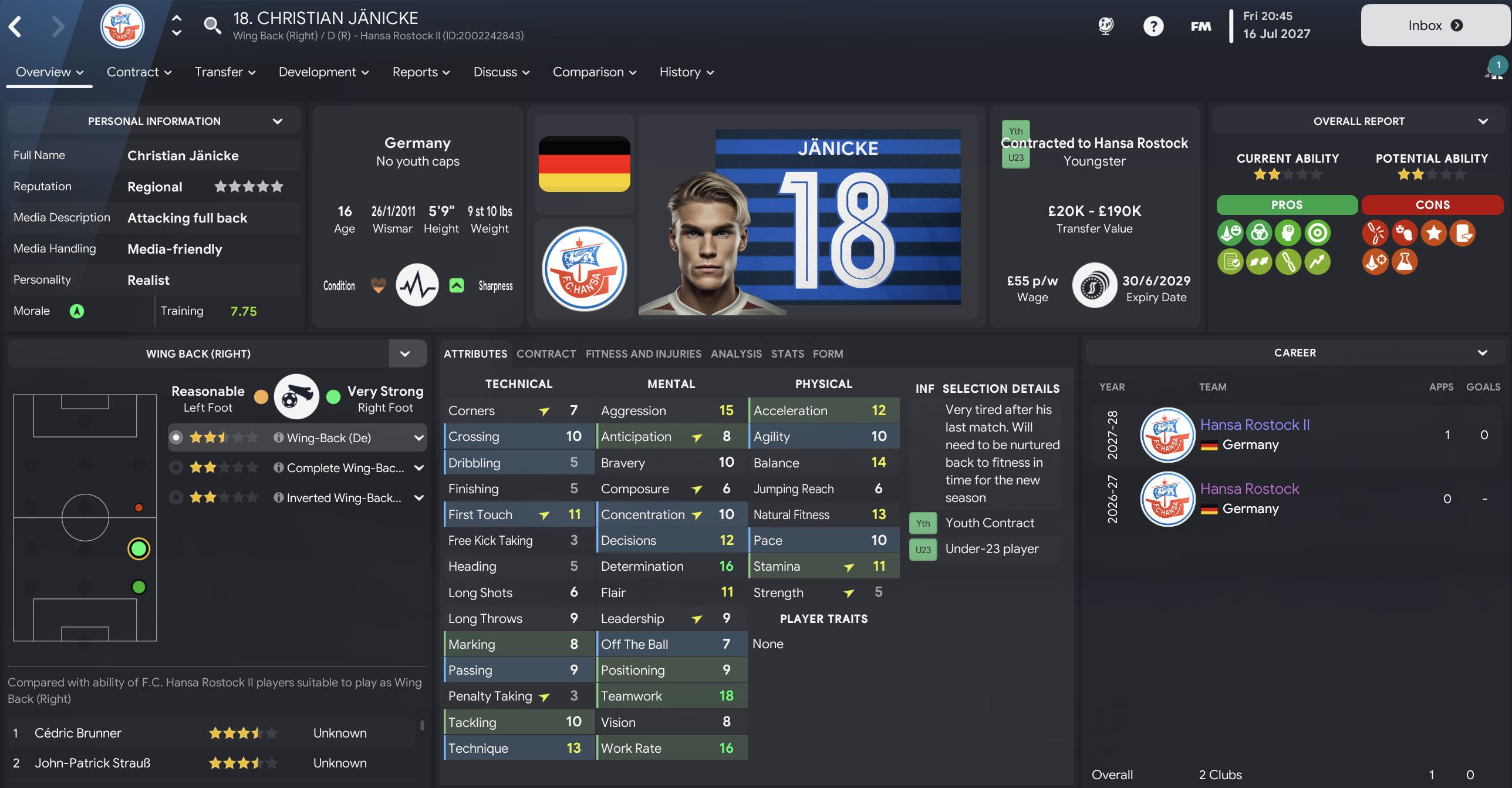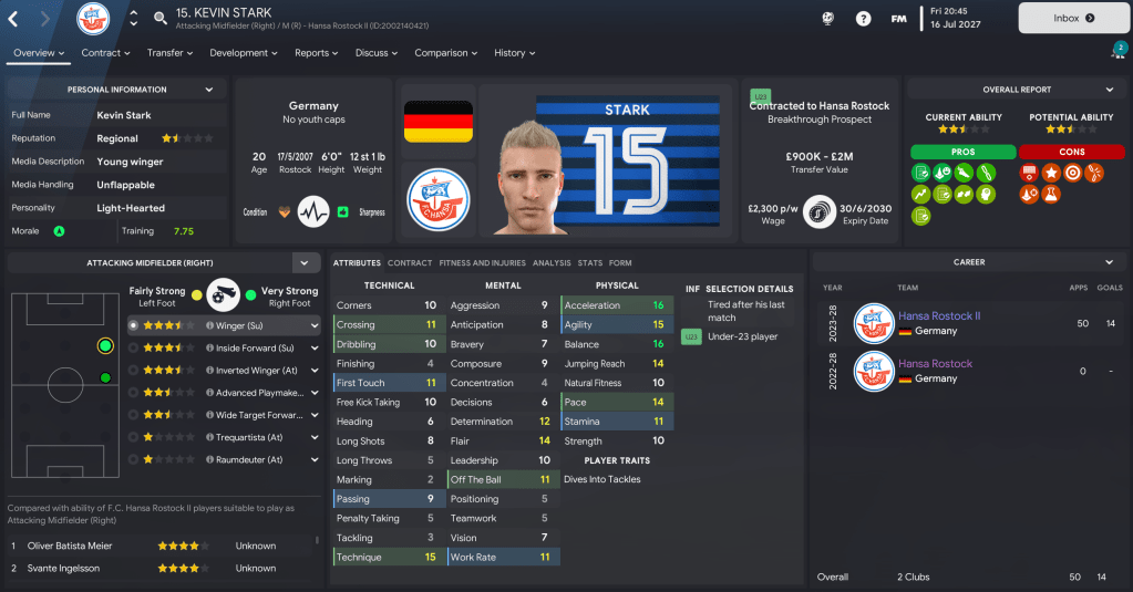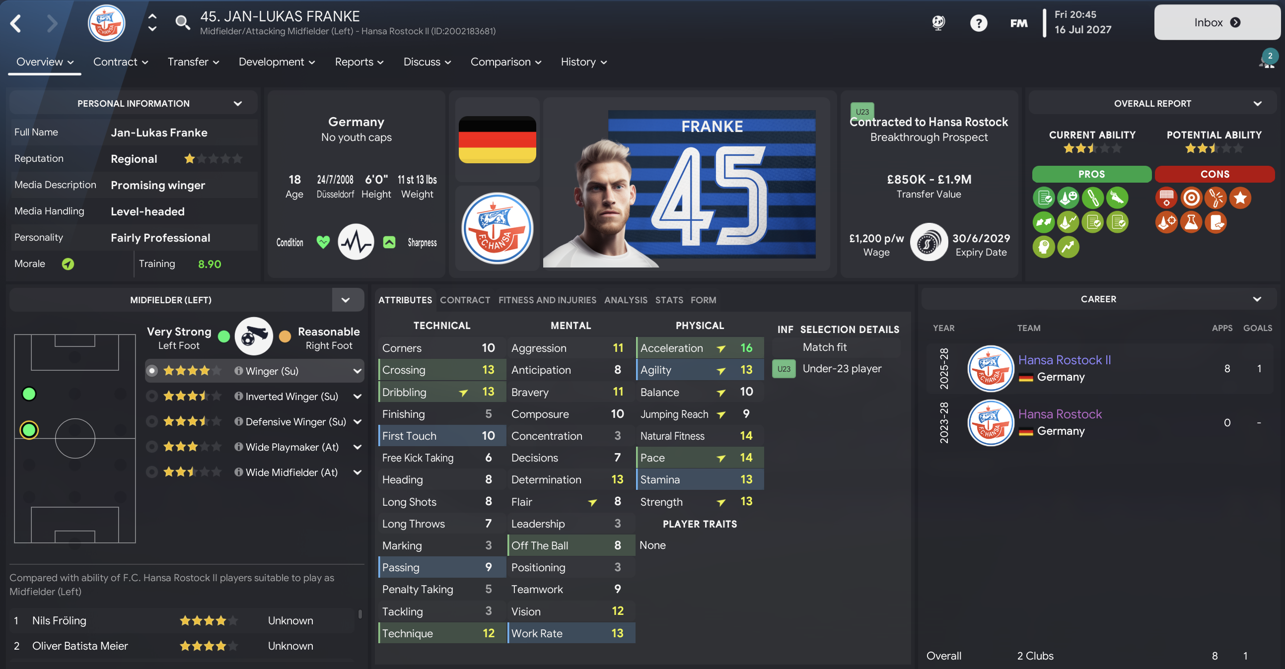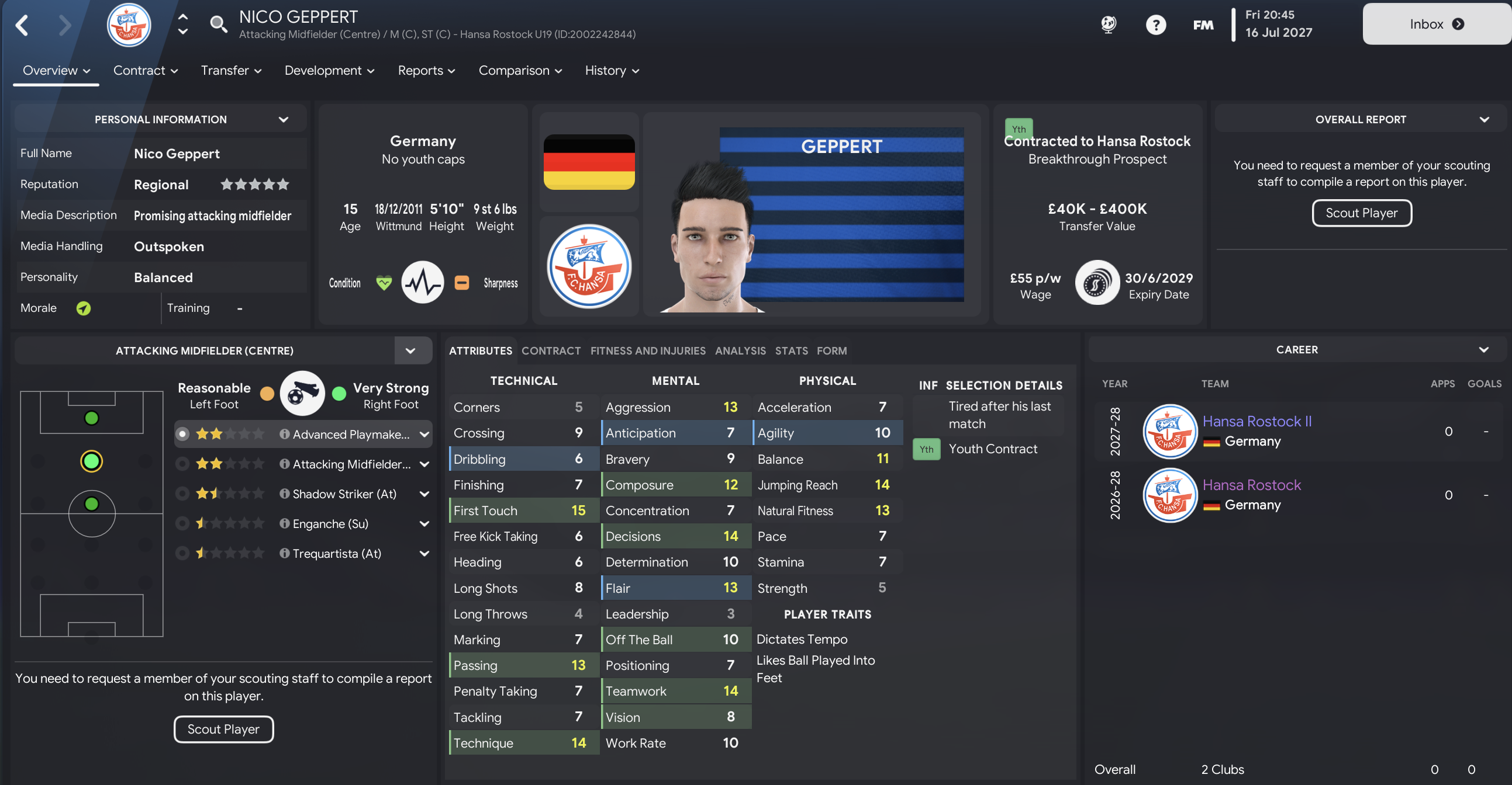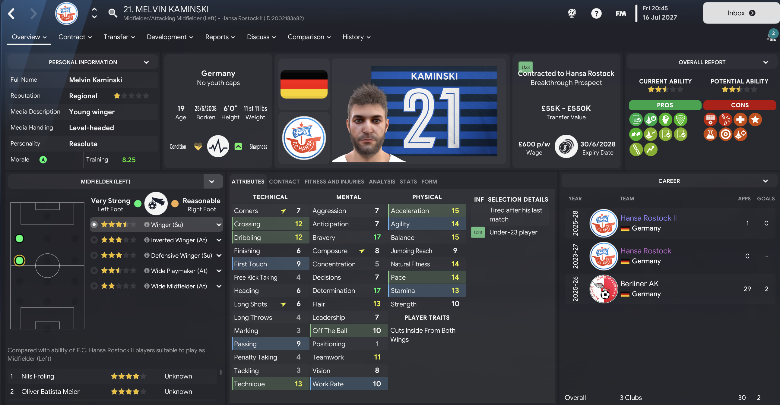 Of the players remaining, the pick of the bunch are attacking midfielders Kevin Stark, Melvin Kaminski, Jan-Lukas Franke and Chilohem Onuoha, 16-year-old right-back Christian Jänicke and 18-year-old Alexander Schumacher, who needs to work on his 4 finishing. But another player keeping an eye on in the future is exciting 15-year-old midfielder Nico Geppert.
