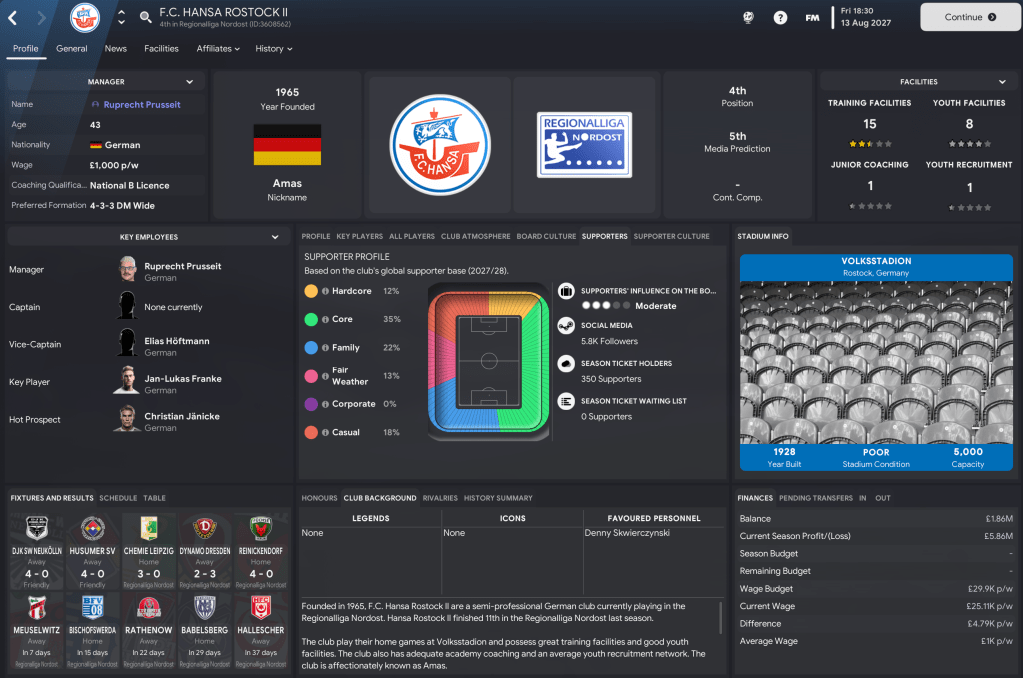 Five years into his OstDeutscher Sieg challenge to lead an East German club to Bundesliga glory, Ruprecht Prusseit had just enjoyed his second-best season as a Football Manager. A successful summer rebuild had transformed the fortunes of 1. FC Lok Stendal from relegation favourites to a solid top-half finish.