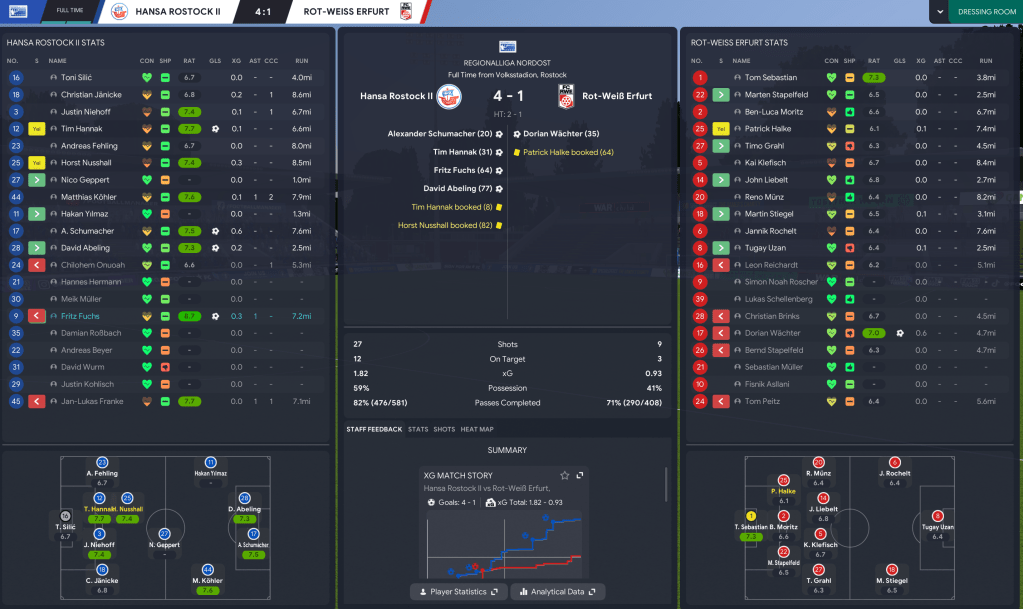 Game 3 – Chemnitzer (3rd, home): The biggest test in the run-in was at home to another OstDeutsch side Chemnitzer. But the strikeforce of Schumacher and Onuoha had too much for them as both scored twice in a dominant 4-0 victory. The next day, Dynamo hosted Rot-Weiß Erfurt and dropped more points as Erfurt scored a 96th-minute equaliser to nick a 2-2 draw, which kept Rostock II top of the league by a point.