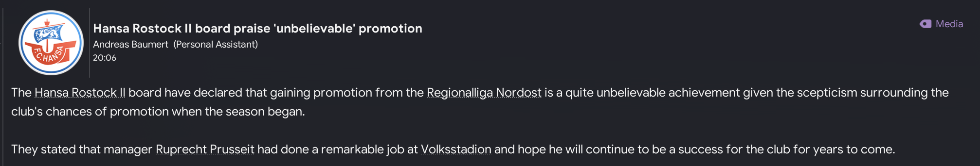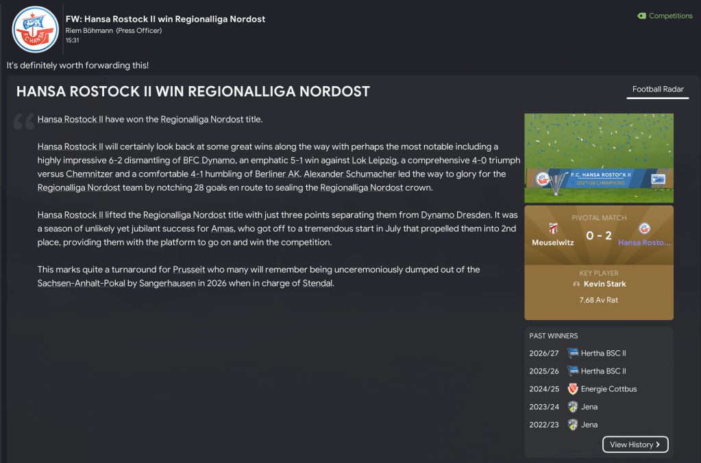 Hansa Rostock II won Regionalliga Nordost and Rupecht Prusseit had his first piece of silverware!!