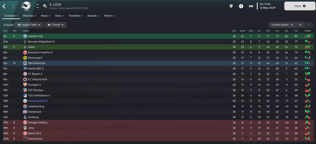 They celebrated that survival by going to 3rd-place Aalen and winning 3-2 with goals from Schumacher, Fuchs and full-back John-Patrick Strauß. And the season was rounded off with a 0-0 draw against Jena then a solid 1-0 defeat at Dortmund II.