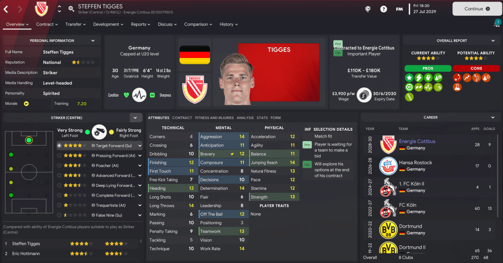 A few days later, Cottbus asked for his staff changes and swiftly offered him the job on a one-year contract increasing his wage to £2k per week. So Prusseit was moving on to club four of his OstDeutscher Sieg adventure! It may sound odd to move from a third-tier side to one in tier four, but Prusseit firmly believed this was a great opportunity to strengthen his reputation.