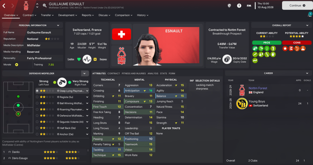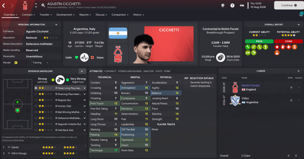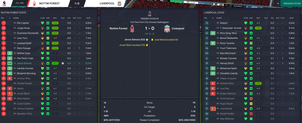 Those draws kicked off a 10-game unbeaten streak before a trip to Liverpool, who we’d still only beaten once in 18 attempts. And that trend continued with a 2-1 defeat. But our season swung on a two-week spell of three home games in December that began with Amílcar’s brace inspiring a 2-1 win over Man UFC before a thrilling 4-3 defeat of Chelsea led by two Nelson assists and Amílcar scoring the only goal against 12th-place Man City that sent us top for the first time. That form had been driven by Pereira, whose contributions were recognised by him becoming Forest’s first European Golden Boy winner.