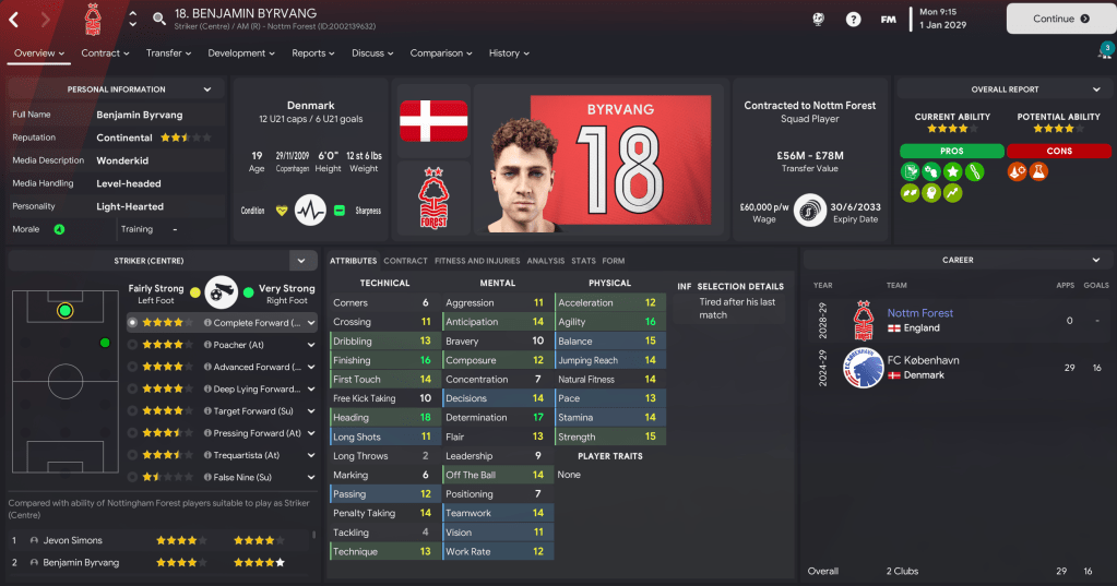 The good form in December sparked a 12-match unbeaten streak, including Byrvang scoring the goal of the month 11 minutes into his debut in a 2-1 win over Leeds on New Year’s Day. A 4-1 defeat at Villa saw West Ham climb above us to the top of the league but a week later Danilo and Gomes downed Arsenal 2-1. A week later, a huge game saw Liverpool come to town and Simons’ second-half strike saw us gain just a second win of this save and first in five years over the Merseysiders.