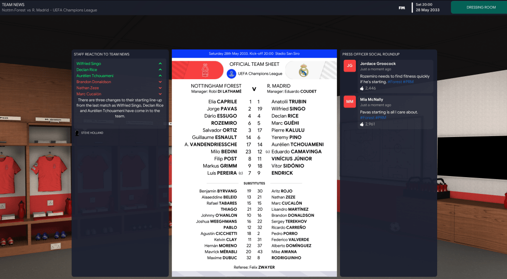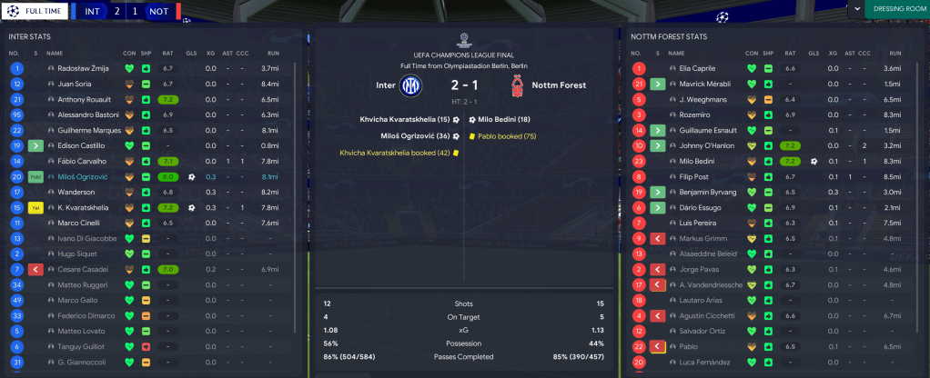 Our opponent this season was Inter Milan, who were in the FInal for the first time since winning it 24 years ago. We had a clean bill of health, so I lined up: