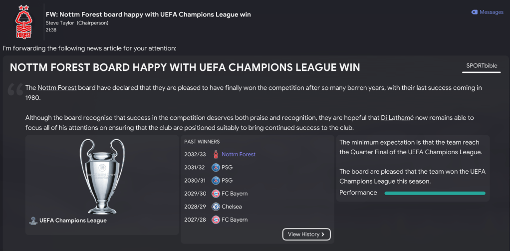 Could we continue the Forest success and add more trophies in 2034/35? Join us next Wednesday to find out!