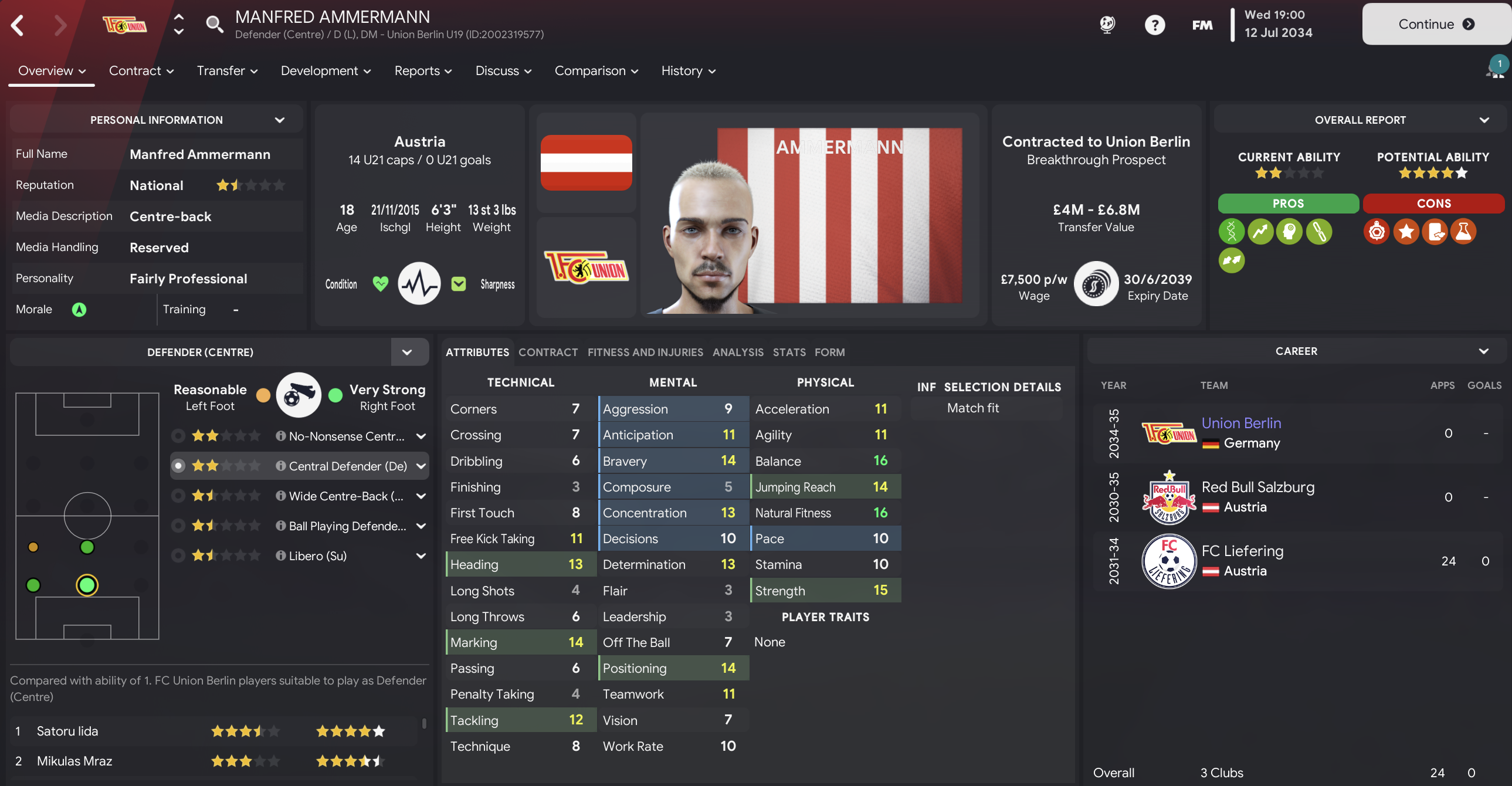 The summer of 2034 began with a mini-saga as Bayern responded to not winning Bundesliga for the first time in 22 years by sacking Julian Nagelsmann after 12 successive league titles and three Champions League wins. The Bayern fans immediately instilled Prusseit as their favourite for the vacant job, but obviously Prusseit wasn’t interested.