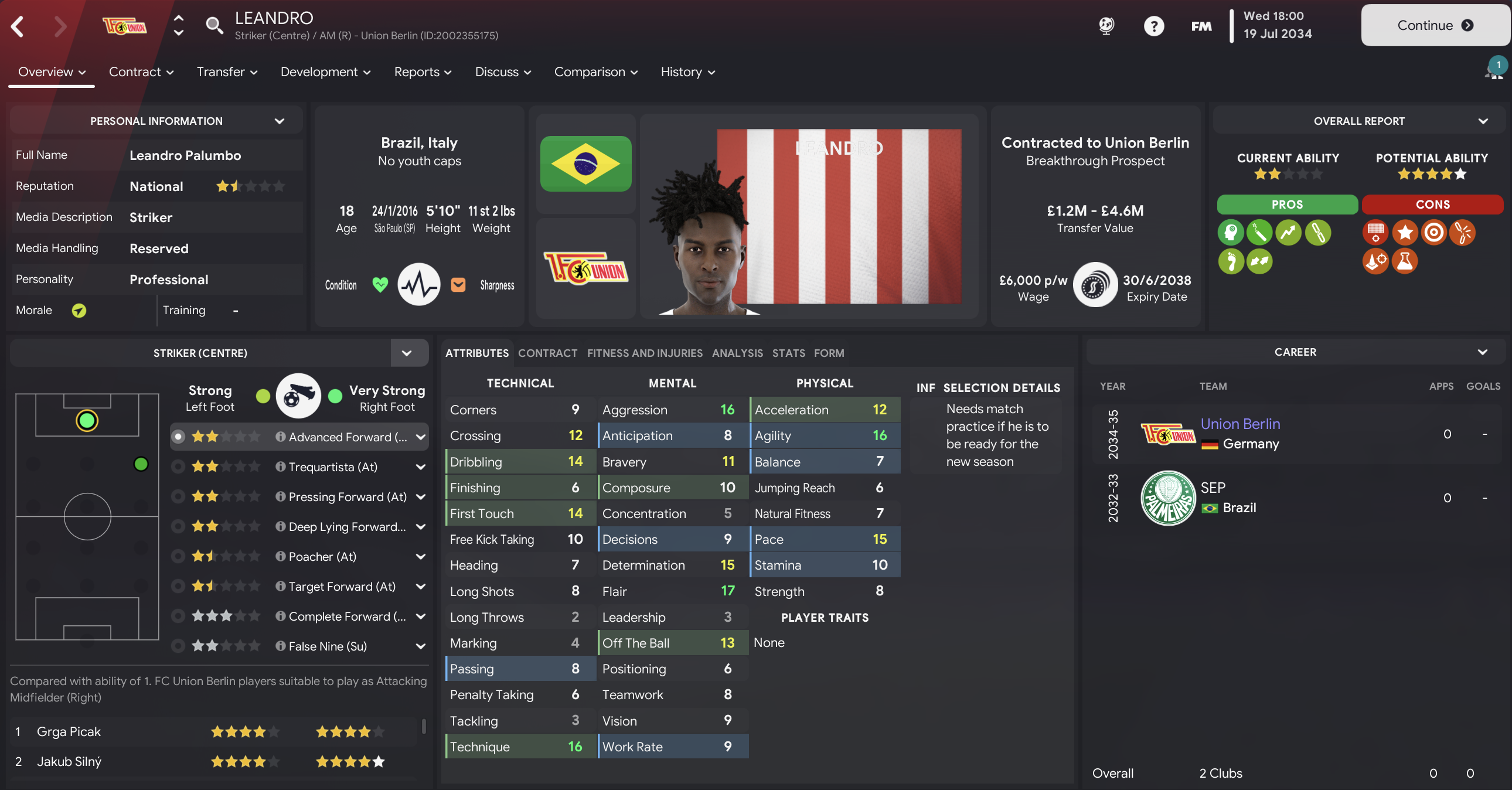 Prusseit then broke the Union transfer record to sign holding midfielder Abdelkarim Belkacem for £8.5m from Feyenoord before centre-back Manfred Ammermann signed for £4m from Leipzig and winger Gonzalo Abreu joined for £2.5m from Peñarol. But the signing of the summer could be 18-year-old striker Leandro for £4.6m from Palmeiras who, Prusseit thought quietly to himself, could be the new Endrick.