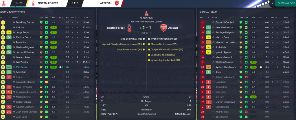We again made it to the Carabao Cup Final, beating Spurs 5-1 on aggregate in the semis, and Pereira and Grimm strikes saw us easily retain it 2-0 against Arsenal. Our FA Cup defence was kickstarted by a 6-1 hammering of Man UFC before beating affiliate team Reading then edged past Spurs 2-1 in extra time in the semis. A final against Brighton followed, but we slipped to a 2-1 defeat to ruin a dream of consecutive domestic trebles.