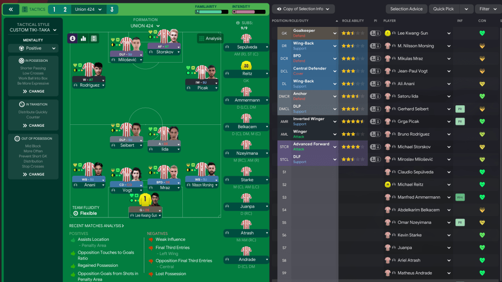 The squad was now looking in a really good place, with every first-teamer having at least 3.5-star potential and 14 having 5-star potential. Prusseit was considering a tactical change, moving to a 4-2-4 or a 4-3-3 both utilising two holding midfielders, keeping last season’s successful 4-3-3 in his back pocket. But he was leaning towards the 4-2-4.