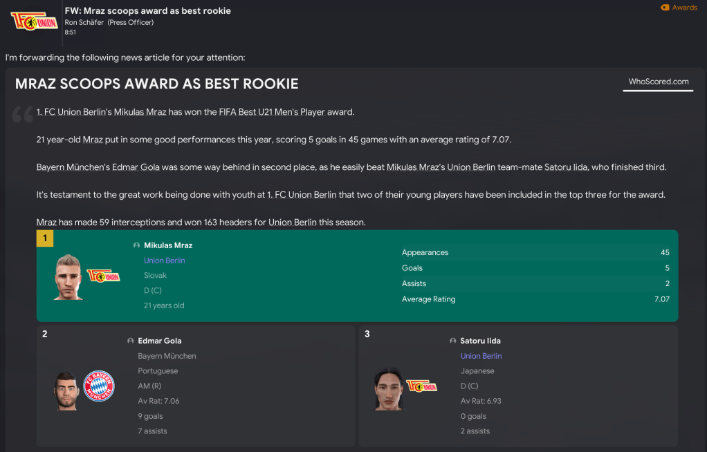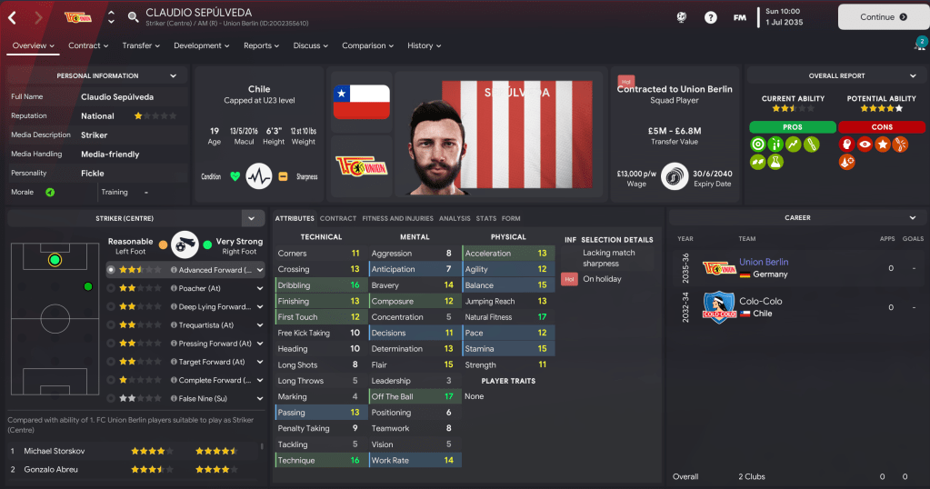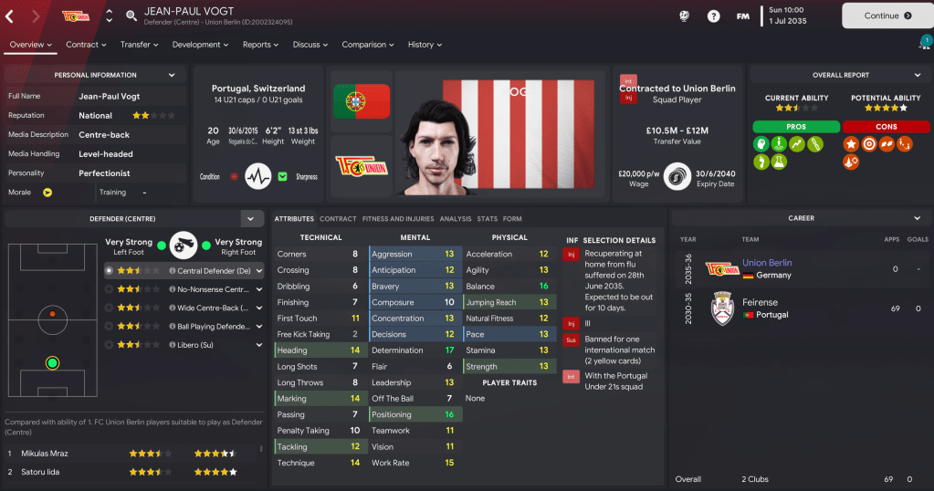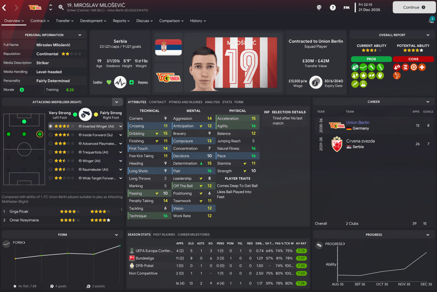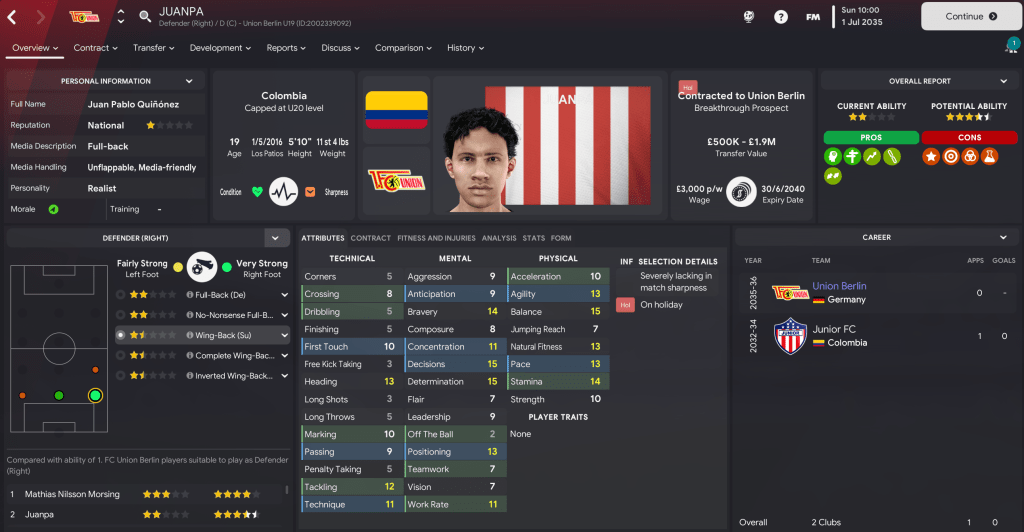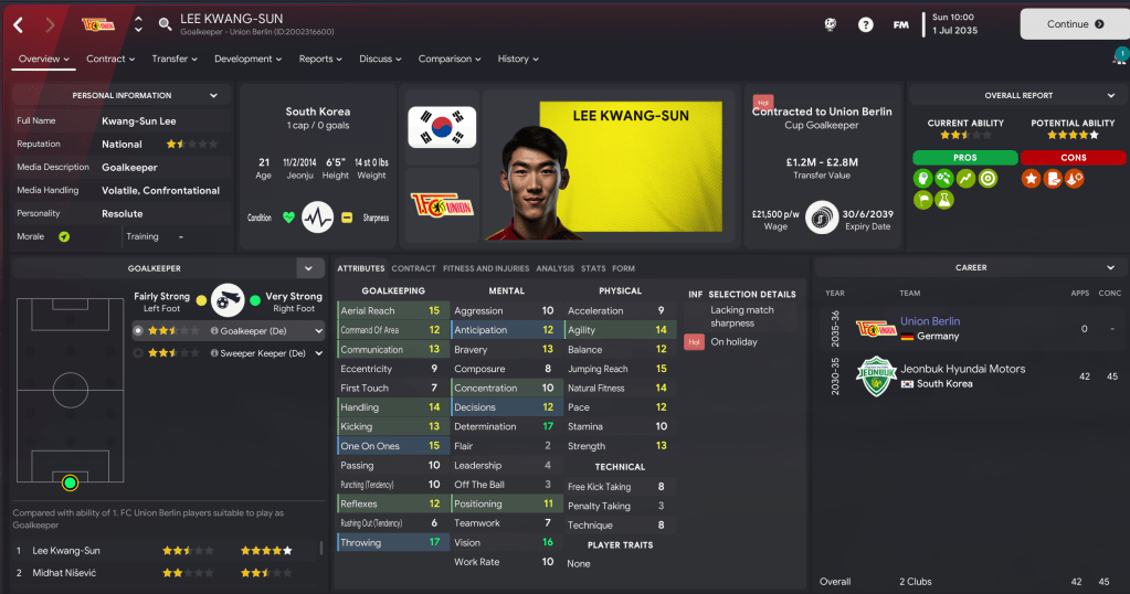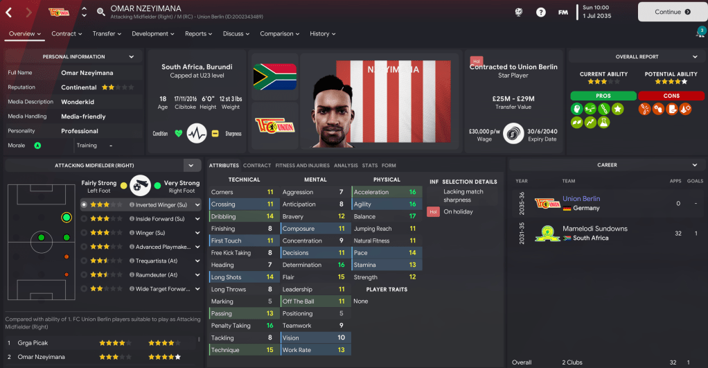 Union Berlin wrapped up back-to-back European campaigns for the first time in club history as they sealed a second successive 7th-place Bundesliga on the final day of 2035/35. And manager Ruprecht Prusseit was excited for the future as he secured the signings of some serious hot prospects that he felt gave him potentially the best young squad in Europe.