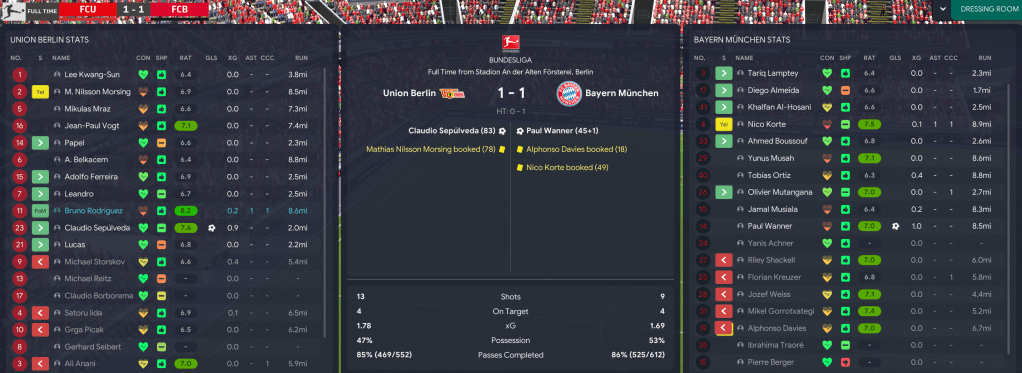 That set them up for a huge game with a visit from 2nd-place Bayern, who Union hadn’t beaten in 20 meetings over 10 years. Union had the better of the first half only for Bayern to take a completely undeserved lead in stoppage time. Prusseit continued to push, threw subs on and they eventually got their reward as Sepúlveda got the equaliser seven minutes from time.
