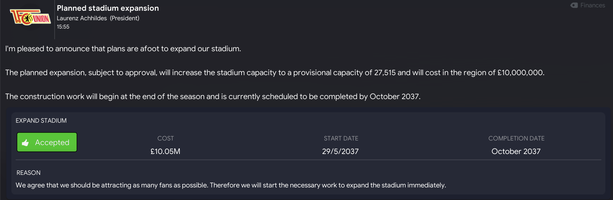 Union came into the new season with £155m in the bank and a bumper £82m transfer kitty. Furthermore, Prusseit’s board was so happy with his efforts that they handed him another new contract on £35k a week until 2040. They also announced plans to increase the stadium capacity by 5,000 seats to 27,515.