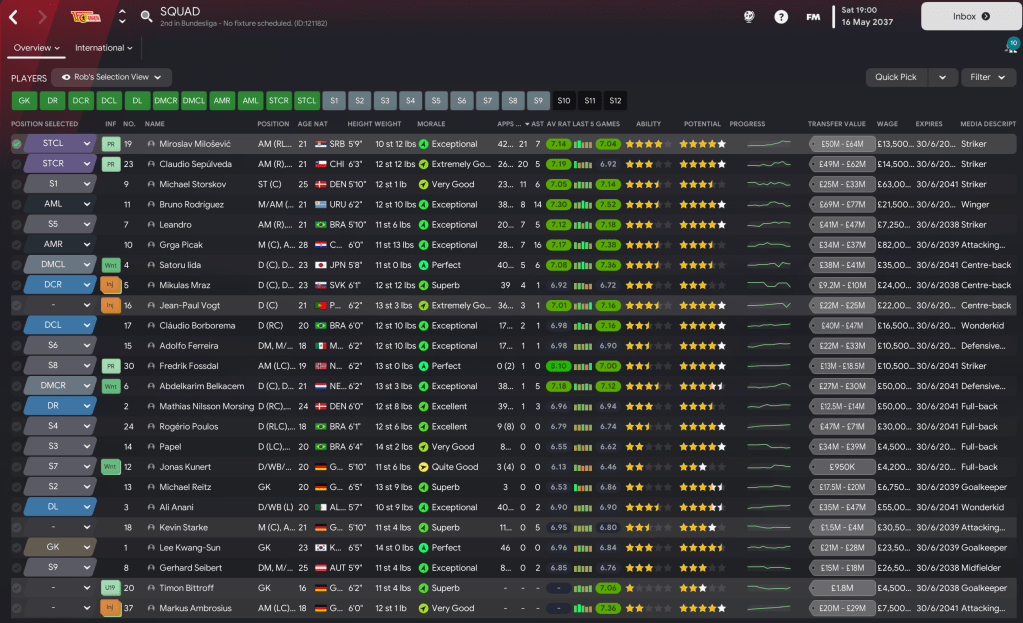 Game 5 – Bayern München (2nd, away): Bayern had only lost one game at home in six seasons, so that seemed unlikely based on Union’s recent away days. Their quality showed as they battered Union in the first half but couldn’t find a way through. They finally struck in the 87th minute to a goal that looked offside but, against all the odds, Union countered to equalise through a rare goal from the out-of-form Storskov. However, scummy Bayern – who apparently were immune to tiredness after their Champions League game – struck again in the 92nd minute to go top. And Prusseit was furious because that was probably the title gone again.