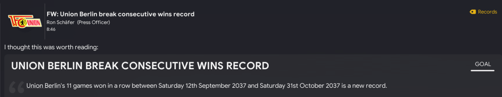 Union wrapped up 2037 with a 2-1 win at Frankfurt thanks to a rare Satoru Iida strike and Storskov’s late winner. While 2nd and 3rd place Bayern and Köln drew 1-1. That saw Union open a huge 10-point lead heading into a month-long break. Sepúlveda is the top scorer in the league with 18 goals along with a league-high six player of the match awards and second-best 7.51 average rating. While Lee has a league-high 11 clean sheets, only conceding in six matches!
