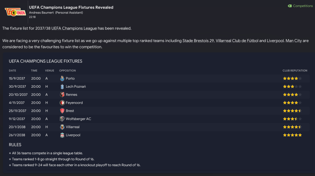 Union got a kinder set of fixtures for their second season in the Champions League, with the opening day and final day trips to Porto and Liverpool posing the toughest tests.