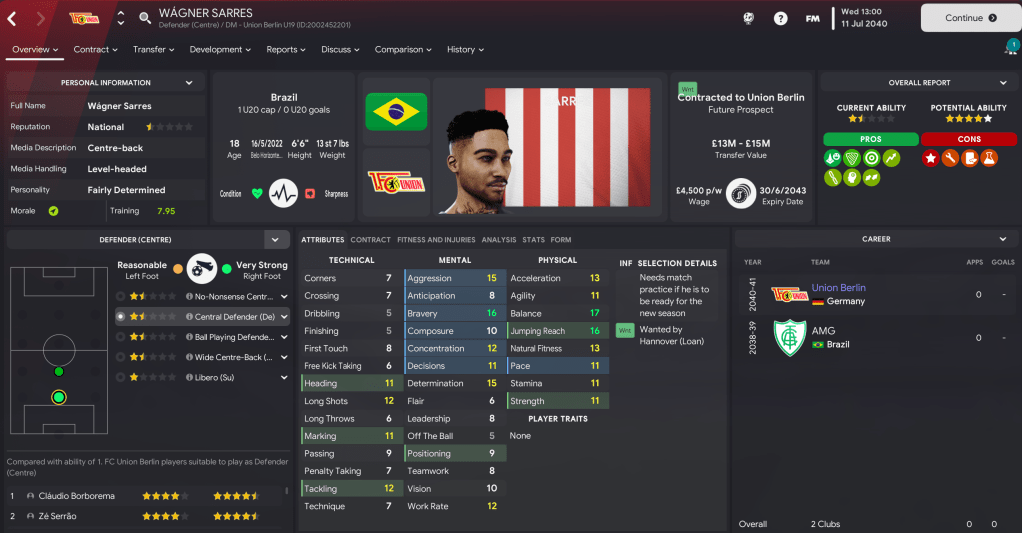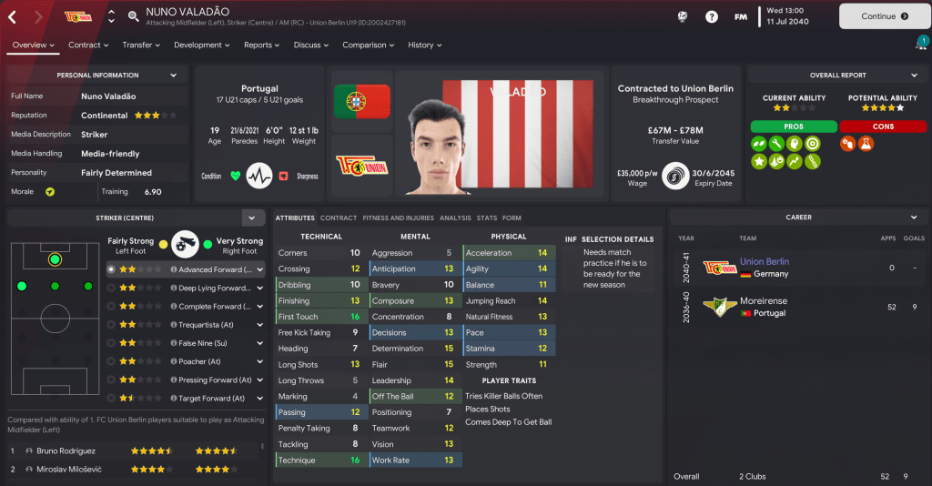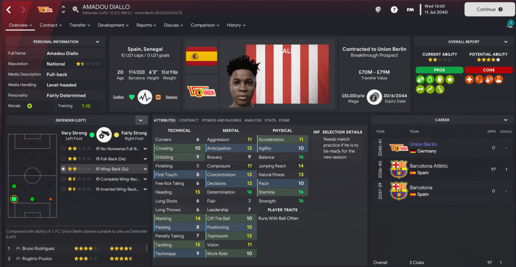 Union Berlin were firmly cementing themselves as the best team in Germany having ended Bayern München’s domination with three consecutive Bundesliga titles. And they reached their maiden Champions League Final in 2040, only losing 1-0 to Real Madrid in extra-time.