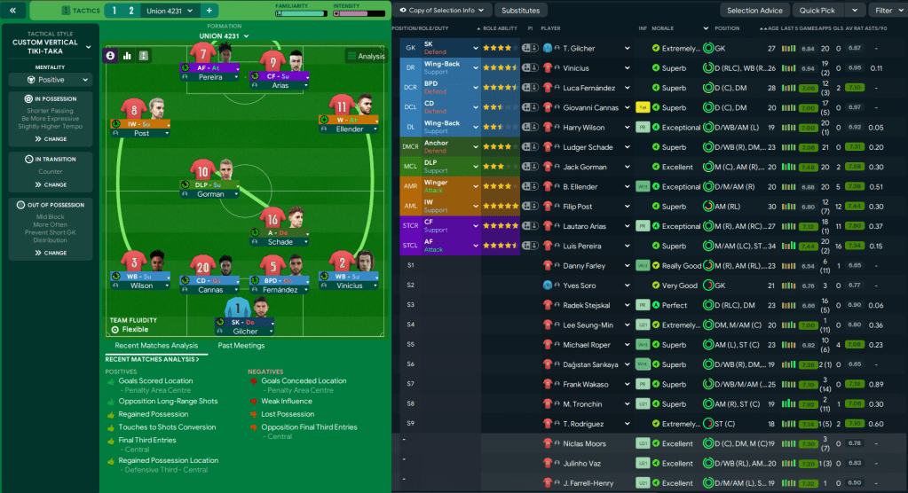 I saw no need to change our all-dominating tactic, but there are some changes to the starting lineup. Academy products Jack Gorman and Ellender are now our first-choice midfielder and right-winger alongside Wilson at left-back. And the squad is now looking far more youthful, with the exception of star men Luís Pereira and Filip Post, now 34 and 30.