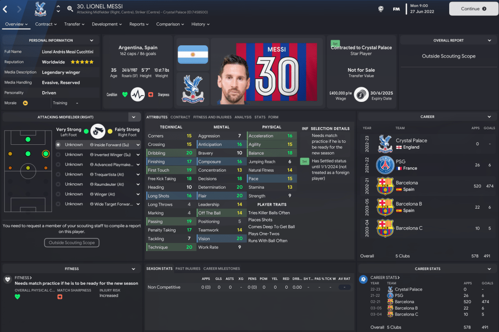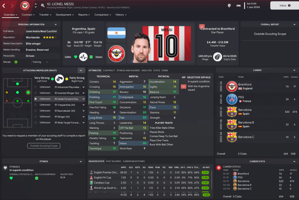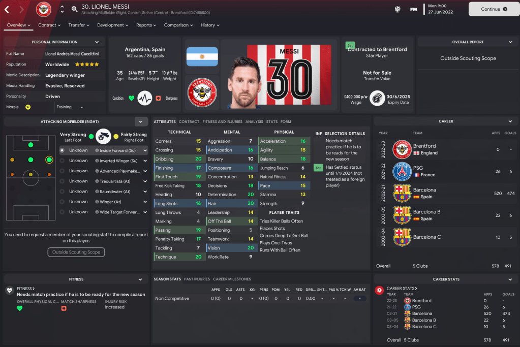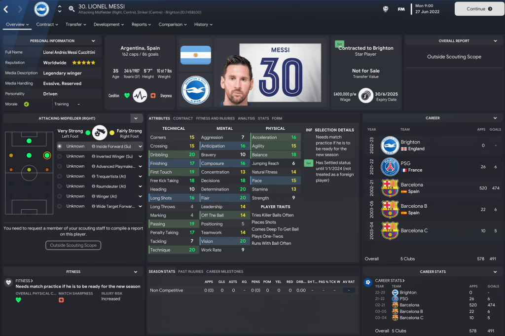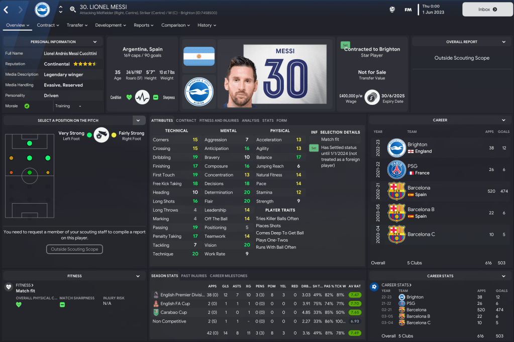 Another fascinating option would be how Messi would fit into the exciting project being built at Brighton – who are notoriously either really good or really bad on FM23.