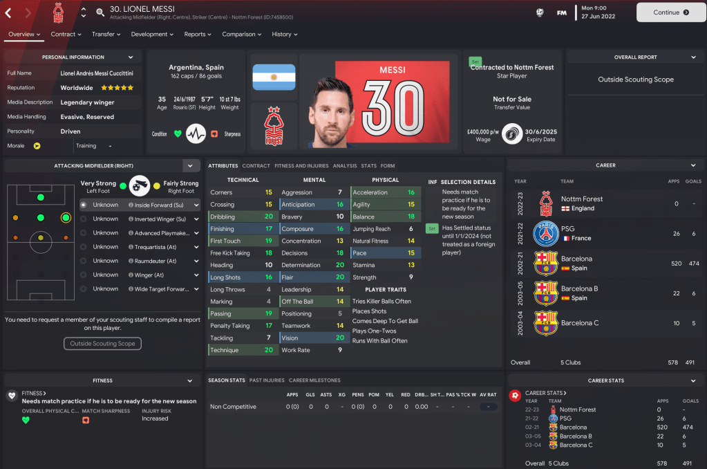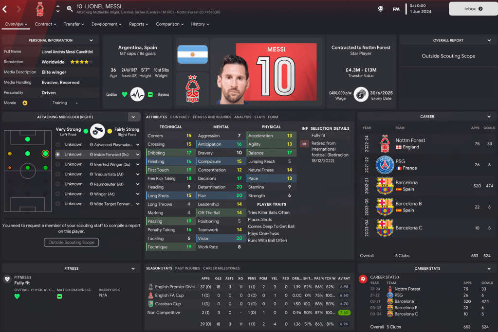 Forest also enjoyed a solid first season back in the Premier League, but could Messi’s stardust save them in FM?