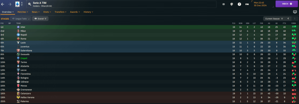 Empoli FC enjoyed a season of overachievement in our first season of the Football Manager 2024 Beta, as we led them to an 11th-place finish. Those achievements were all the more impressive considering most of our squad was considered Serie B players, and most of them were on loan.