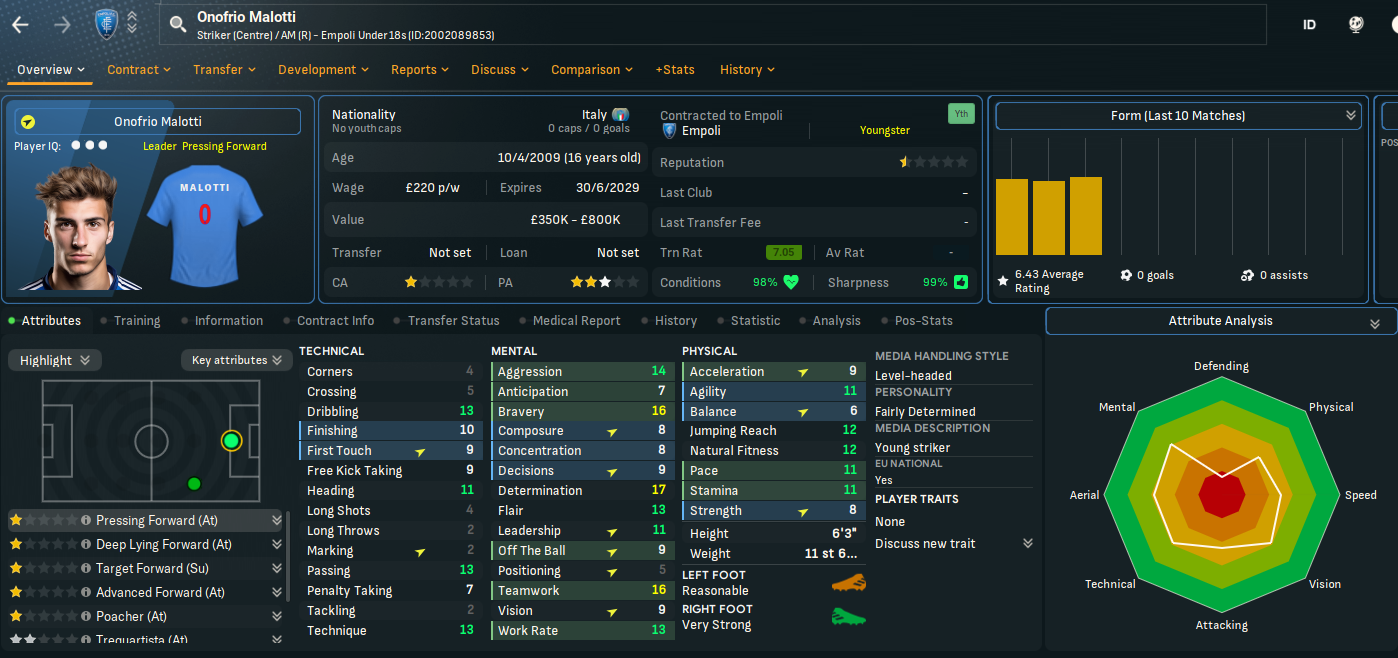 We got another decent youth intake, as proven by the youth candidates hammering our under 18s 4-2. The pick of the bunch is winger Matteo Malotti, along with centre-back Pantaleo Nunziatini, striker Onofrio Malotti (not sure if he’s a relation to Matteo), wingers Leonardo Padovani and Paolo Voltan and goalkeeper Marco Fontana. Although all their potential has supposedly dropped by one star between youth intake day and early May. Additionally, the board agreed to improve the youth facilities and youth recruitment at the end of the season.
